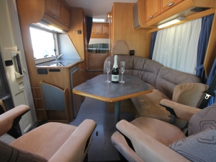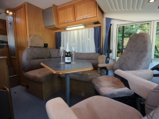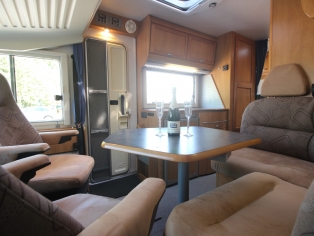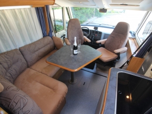 2 comfortabele ISRI pilotestoelen in hoogte verstelbaar, draaibaar naar het bijzonder ruime zitgroep. Het prachtige interieur heeft nieuwe moderne bekleding en Kirschbaum hout decor, wat met zijn vele sfeerverlichting een bijzonder mooi effect geeft. Alle ramen zijn voorzien van plissévouwverduistering.
