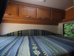 Het slaapgedeelte heeft een ruim 1 persoons bed met matras op lattenbodem. Boven de cabine een ruim 2 persoons hefbed. Dit betreft een B Klasse en bevat een dubbele vloer met extra bergruimte bereikbaar dmv. diverse kleppen van buitenaf en een grote garage.