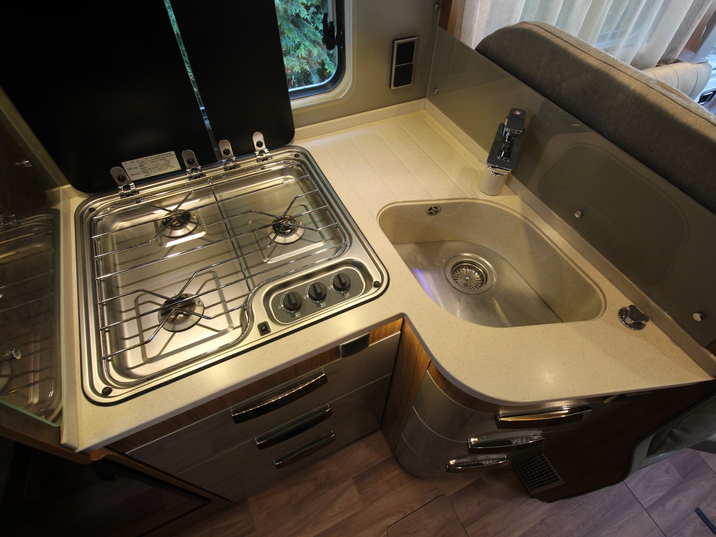 Het slaapgedeelte heeft 2 enkele bedden met het Hymer slaapcomfort systeem met koudschuim matras op schotellattenbodem, ( om te leggen naar 1 groot bed) waaronder zich 2 ruime (hang)kasten bevinden. Dit betreft een Hymer B serie en bevat een dubbele bodem met veel extra bergruimte bereikbaar door diverse luiken in de vloer. De camper is voorzien van het comfortabele ALDE 3020 vloeistofverwarming met zowel gas als electra als energie-keuze. De royale hoekkeuken bevat een blad uit mineraalstof, spoelbak en 3 pits kooktoestel, diverse gelagerde laden met verrassend veel bergruimte voor kookgerei en boodschappen, en koelkast Smart Tower 142 L met vriesvak.