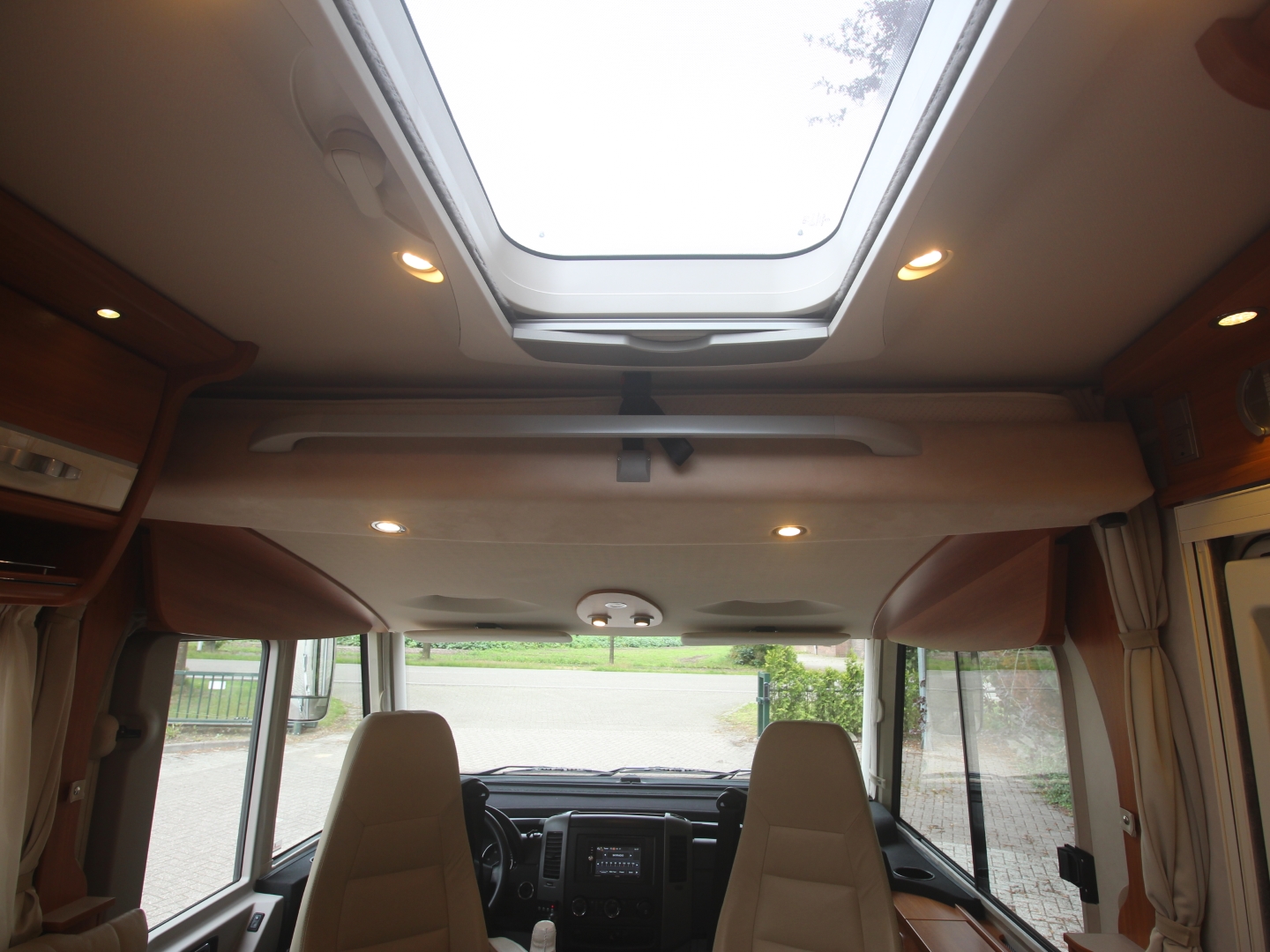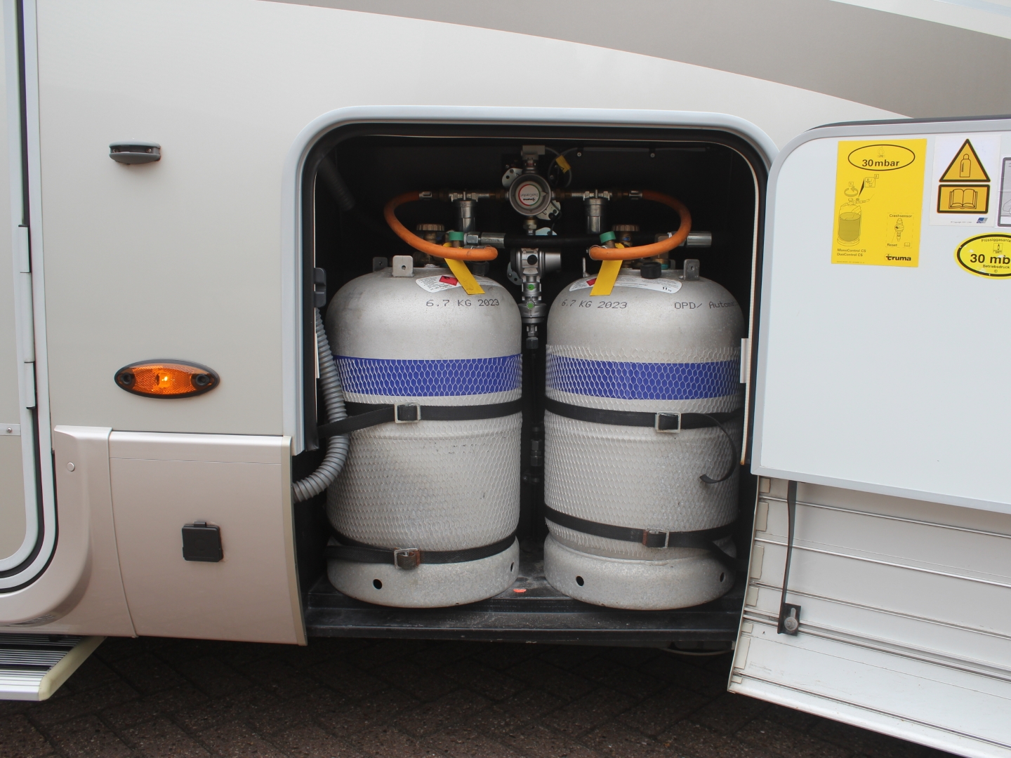 De camper is voorzien van een grote garage waar fietsen en bagage binnen geplaatst kunnen worden, het Alde winterpakket met ISOglas in cabine en warmtewisselaar, LPG installatie met buitenvuller, BBQ aansluiting, Truma Duo control CS automatische gasfles omschakeling en Oyster 85 Skew Vision automatische schotel. Vanwege de zuivere sinus omvormer bent u altijd voorzien van 220 V stroom tijdens het vrijkamperen, terwijl de beide huishoudaccu's constant worden geladen door de twee zonnepanelen. De comfort ingangsdeur heeft een raam, schuifbare hordeur en een elektrisch en geïntegreerde opstap.