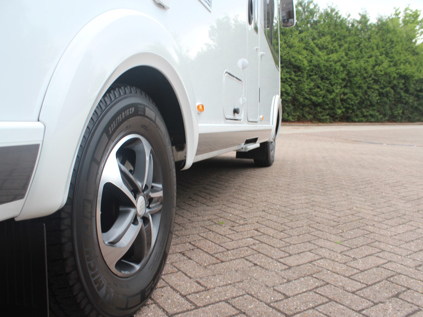 De camper heeft veel bergruimte in de ruime dubbele bodem bereikbaar dmv. verschillende luiken in de vloer. Het bevat tevens een grote garage, met 122 cm. vrije laadhoogte en aan beide zijden een grote deur, waarin uw fietsen en bagage veilig binnen geplaatst kunnen worden.