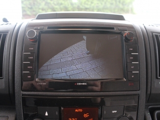 Het dashboard in luxe design met een Zenec multimediasysteem, Zenec navigatie, achteruitrijcamera, bestuurders en bijrijdersairbag en electrisch bedienbare spiegels en ramen.
