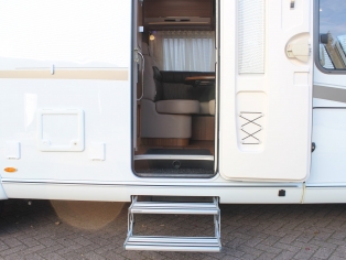 De extra brede comfort ingangs-deur is voorzien van een raam, schuifbare hor, en electrische opstap.