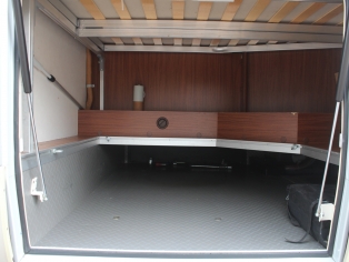 Het slaapgedeelte heeft een ruim 2 persoons frans bed met matras op lattenbodem. Onder het bed is een grote bergruimte, bereikbaar van binnenuit en van buiten dmv. een grote klep. Dit betreft een SL serie en bevat een dubbele vloer met veel extra bergruimte bereikbaar dmv. diverse kleppen van buitenaf.