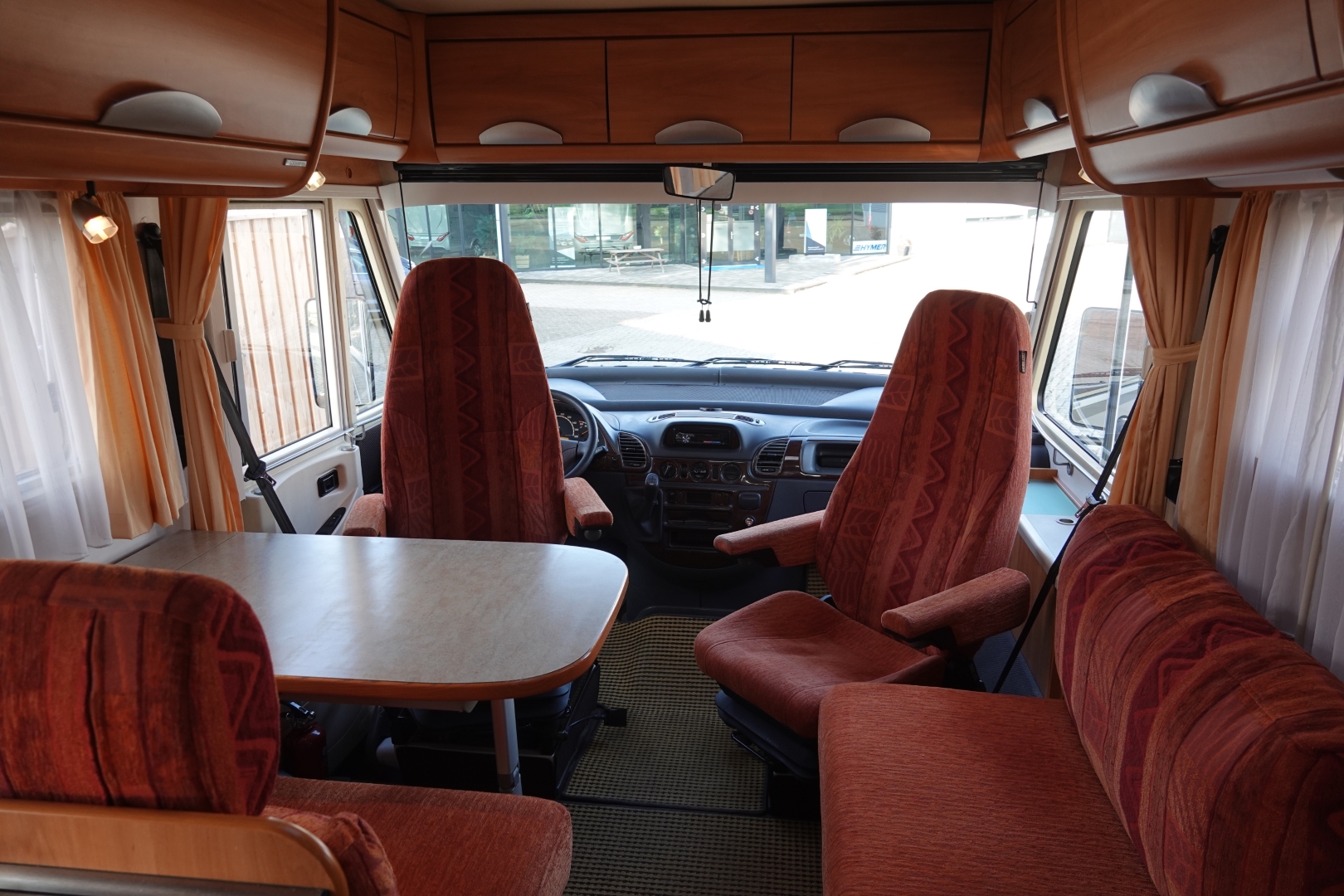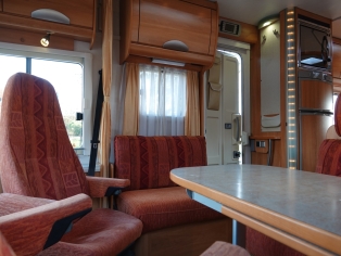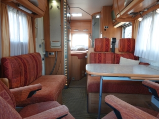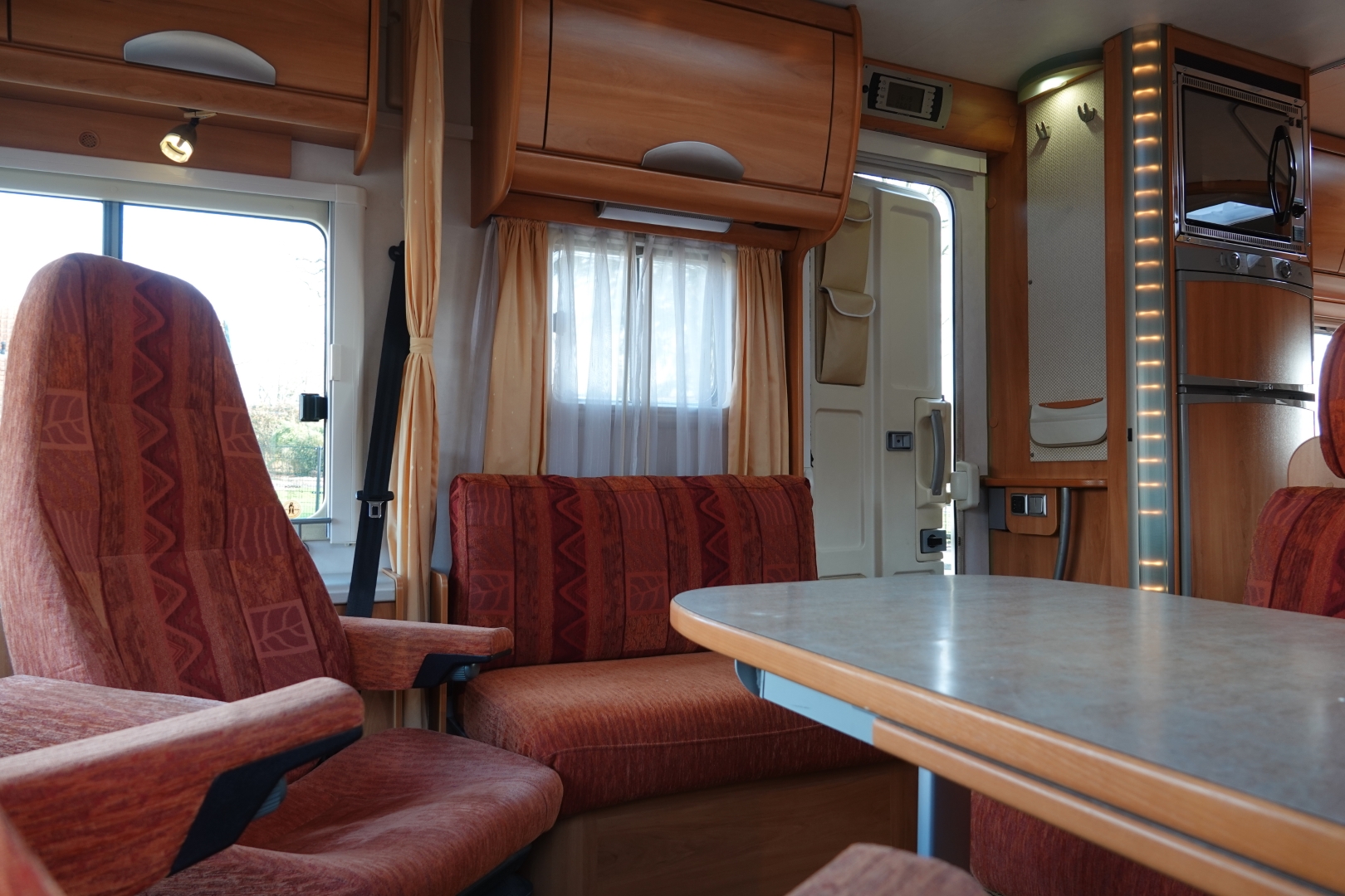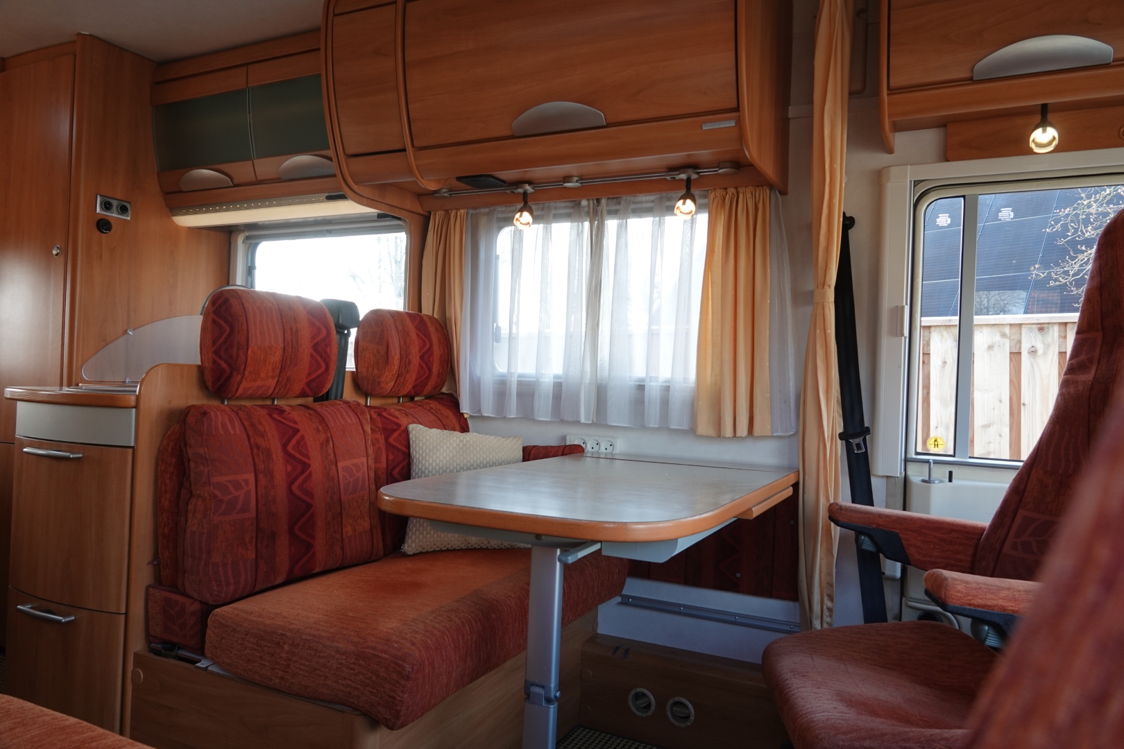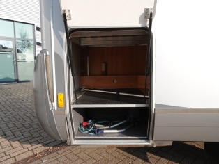 Bovendien is deze camper voorzien van een fietsendrager, grote luifel, trekhaak, automatische schotel met TV, kluis, Abus veiligheidssloten, en LPG installatie met buitenvuller.