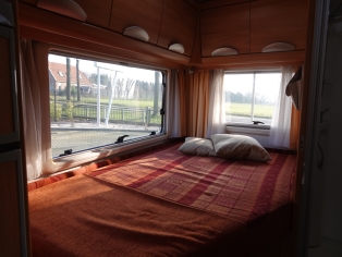 Het frans bed bied slaapplaats voor 2 personen, terwijl van de zitgroep ook een extra slaapplaats gemaakt kan worden.