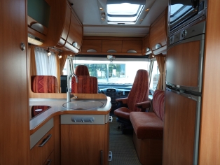 Het ruime interieur bestaat uit een leuke zit met uitschuifbare tafel en zijbank. Schitterende bovenkastjes in de cabine waar u rechtop kunt staan. Het Hymer Kirschbaum meubel-decor, de Hymer bekleding en de vele sfeerverlichting maken het tot een heel gezellig interieur.