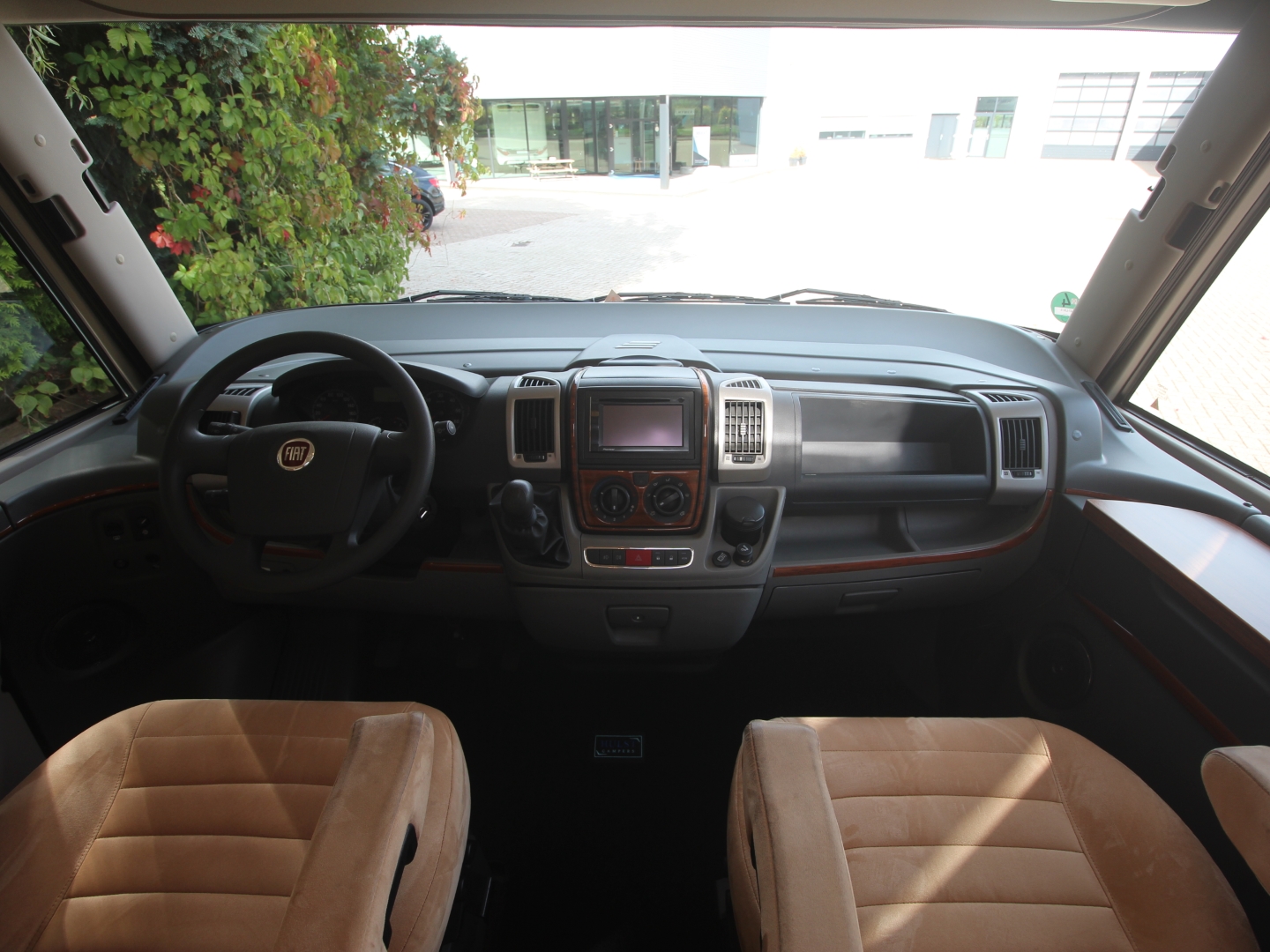 2 comfortabele pilotestoelen, in hoogte verstelbaar en kantelbaar, draaibaar naar gezellige comfort L-zit. Het interieur bestaat uit de unieke Hymer stijl Kirschbaum in combinatie met chique alcantara bekleding, wat met zijn vele verlichting een bijzonder mooi effect geeft. Alle ramen zijn voorzien van plissé vouwverduistering. Het interieur is heerlijk koel te houden met de Dometic dakairco