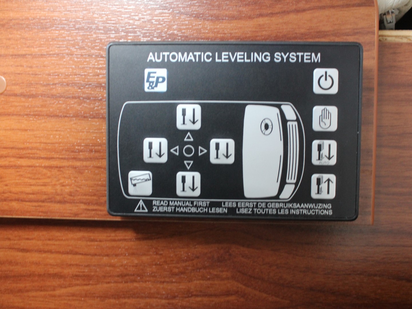 Het dashboard in luxe wortelhout design met een Kenwood multimedia systeem met bluetooth, Waeco achteruitrijcamera, bestuurders- en bijrijdersairbag, en elektrisch bedienbare ramen en spiegels.