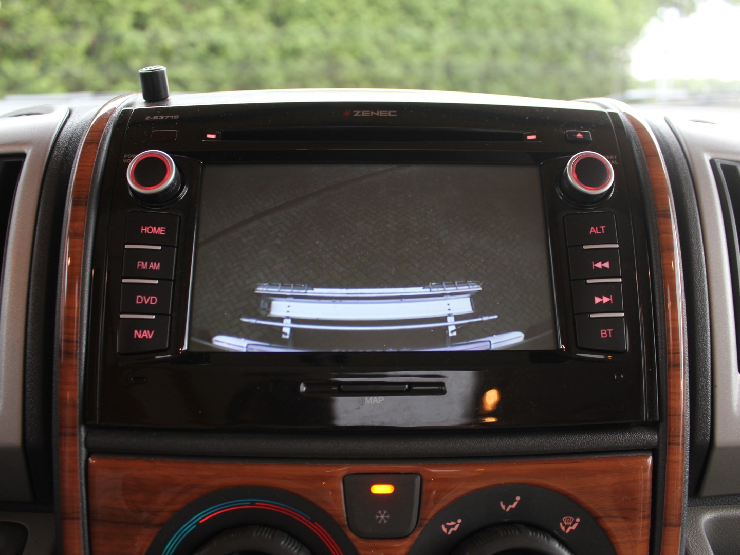 Het dashboard in luxe alu design met een Zenec multimedia systeem met blue-tooth voor het handsfree bellen, navigatie, achteruitrijcamera, en elektrisch bedienbare ramen en spiegels.