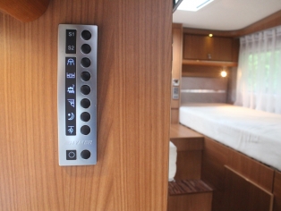 Het slaapgedeelte achterin heeft 2 enkele bedden met binnenverings matras op lattenbodem voor optimaal slaapcomfort. Bovenin de cabine bevindt zich een royaal 2 persoons hefbed. Dit betreft een SL serie en bevat een dubbele vloer met veel extra bergruimte bereikbaar dmv. diverse kleppen van buitenaf. De bijzonder royale garage is bereikbaar via een grote deur links en rechts, en biedt voldoende ruimte voor het binnenstallen van uw fietsen en andere bagage.