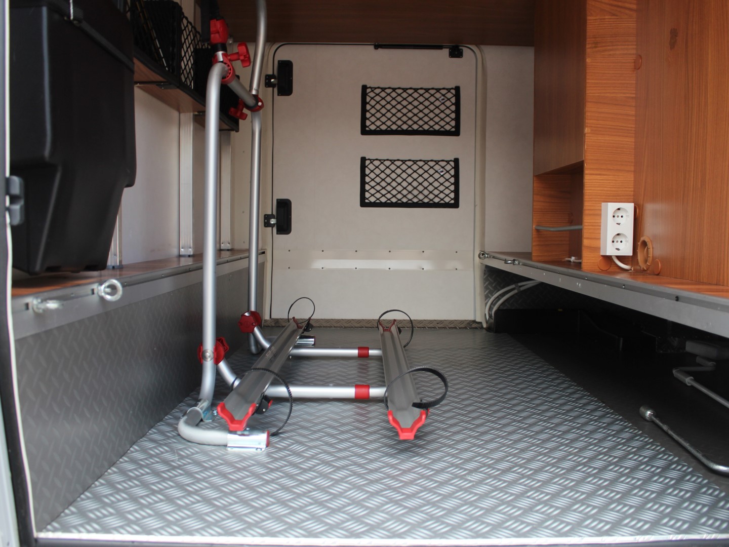 Het slaapgedeelte achterin heeft 2 enkele bedden met binnenveringsmatras op lattenbodem voor optimaal slaapcomfort en is om te leggen tot een groot bed. Dit betreft een SL serie en bevat een dubbele vloer met veel extra bergruimte bereikbaar dmv. diverse kleppen van buitenaf. De royale garage is bereikbaar via een grote deur links en rechts, en bied voldoende ruimte voor het binnenstallen van uw fietsen en andere bagage.
