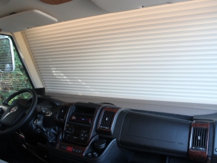 2 comfortabele Aguti Ergoflex pilotenstoelen in hoogte verstelbaar en kantelbaar, draaibaar naar een gezellige comfort L-zit met 360 gr. draaibare salontafel, waar u uw visite comfortabel en ruim kunt ontvangen. Het interieur bestaat uit het stijlvolle Hymer 'Morello Select' meubilair met de luxe 'Cremona' leer/stof bekleding wat met de vele LED verlichting een bijzondere sfeer geeft. Cabineramen zijn voorzien van vouw- verduistering van hoogwaardig plisséstof. Bij het voorraam een electrisch rolluik.