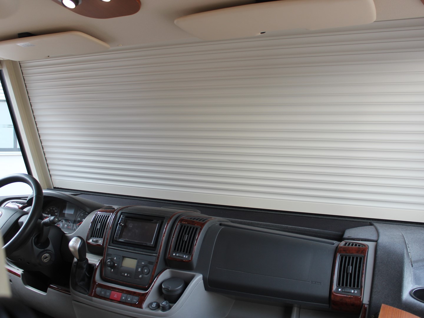 2 comfortabele Aguti Ergoflex pilotenstoelen, draaibaar naar een gezellige comfort L-zit met zijbank en luxe salontafel. Het interieur bestaat uit het stijlvolle Hymer 'Mascara Select' meubilair met de luxe leder Kiesel bekleding wat met de vele LED verlichting een bijzondere sfeer geeft. Cabineramen zijn voorzien van vouw- verduistering van hoogwaardig plisséstof en een elektrisch rolluik bij het voorraam.