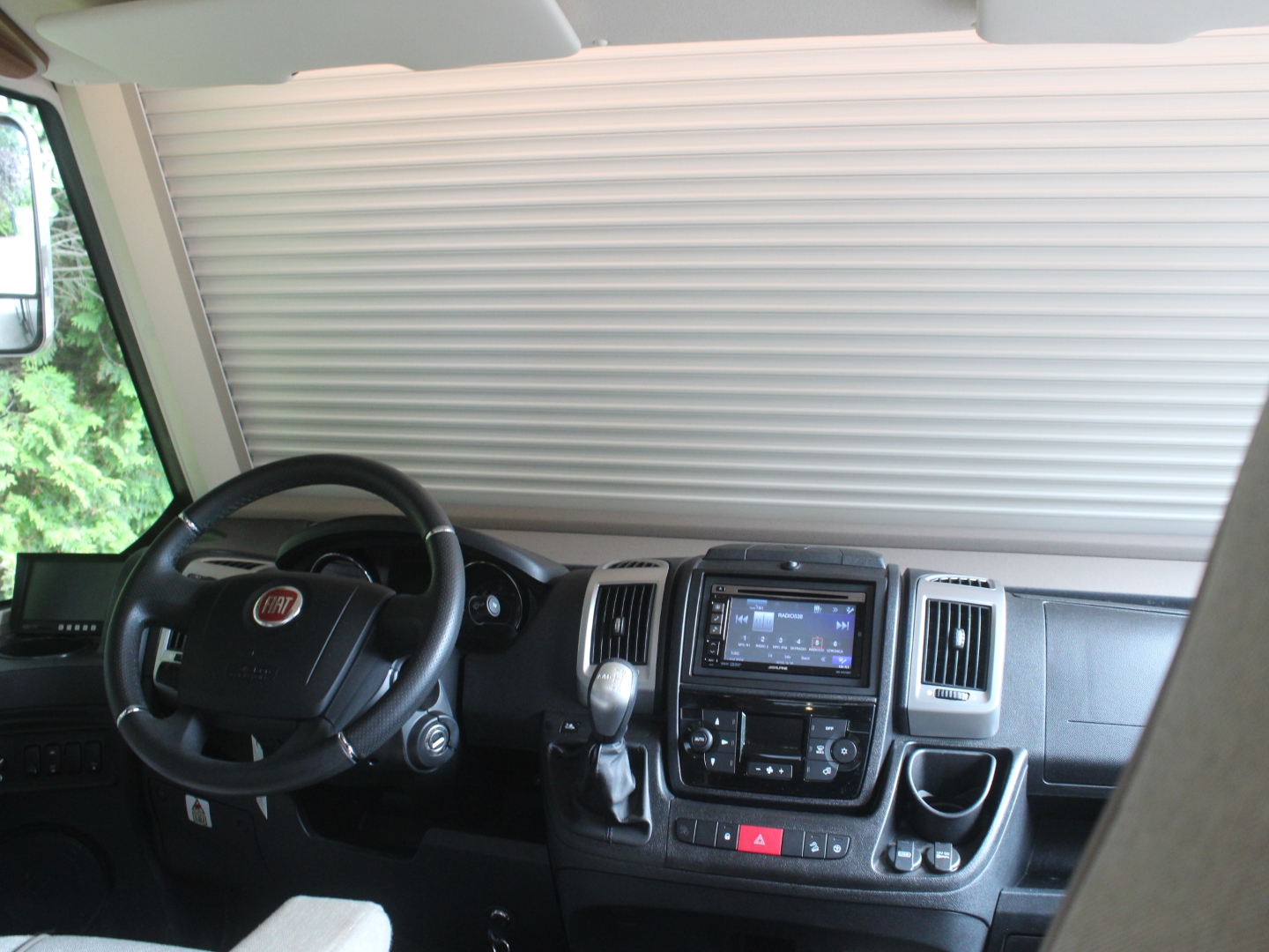 Alle ramen voorzien van vouwverduistering van hoogwaardige plisséstof, het voorraam bevat een elektrisch rolluik.