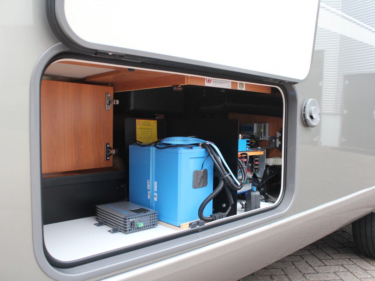 De camper heeft veel bergruimte in de ruime dubbele bodem bereikbaar dmv. verschillende luiken in de vloer. Het bevat tevens een grote garage, met aan beide zijden een grote deur, waarin uw fietsen en bagage veilig binnengeplaatst kunnen worden.