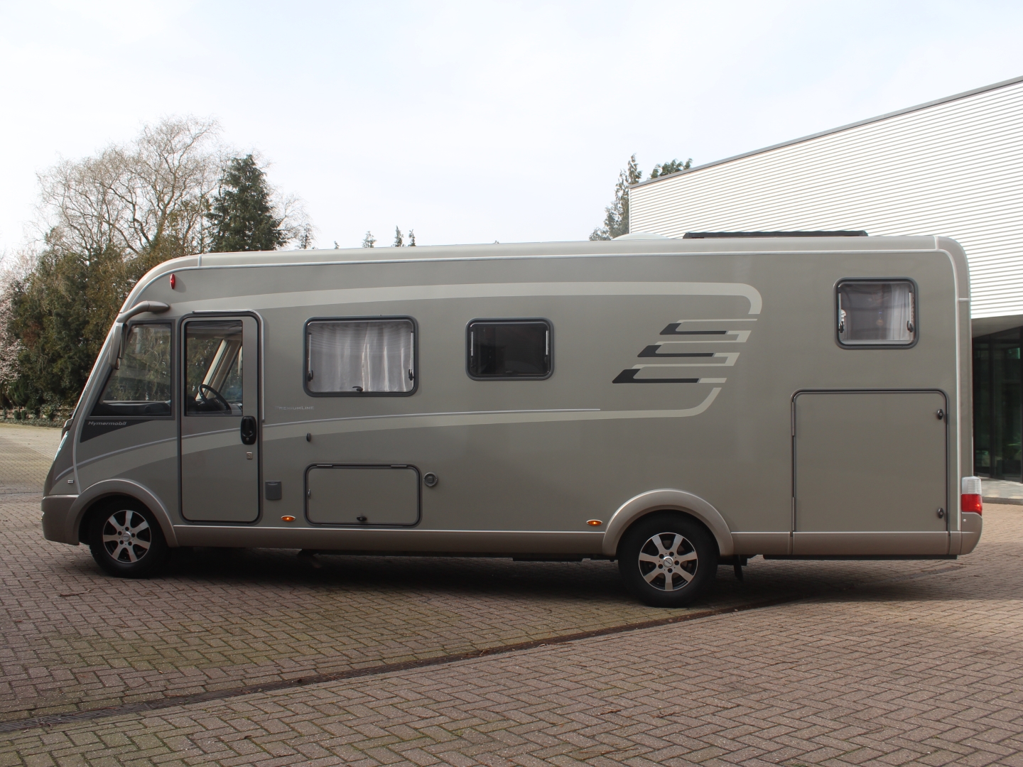 2 comfortabele in hoogte verstelbare en kantelbare Aguti pilotestoelen, draaibaar naar een gezellig comfort L-zit met luxe salontafel. Het interieur bestaat uit exclusief meubeldecor 'Palatino Apfel' met unieke stijl Premium Line in combinatie met de luxe stofbekleding 'Messina' waarbij met de vele LED verlichting een bijzondere sfeer ontstaat. De extra brede comfort ingangs-deur is voorzien van een raam, schuifbare hor, extra Abus veiligheids-slot en electrisch bedienbare opstap.
