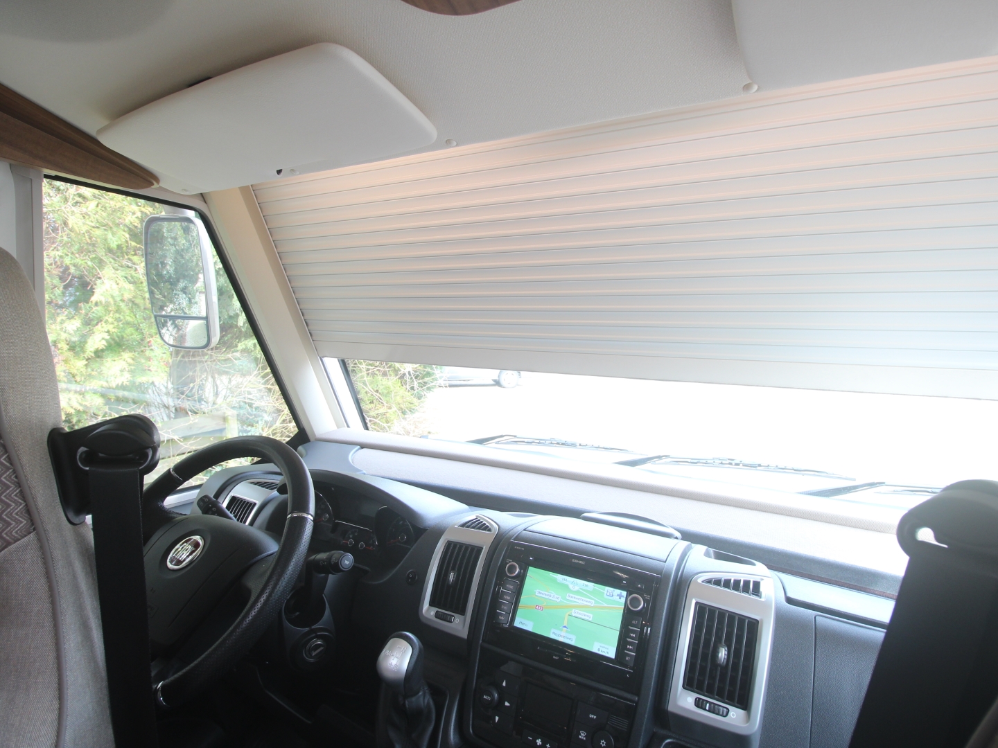 Alle ramen voorzien van vouwverduistering van hoogwaardige plisséstof, het voorraam bevat een electrisch rolluik.