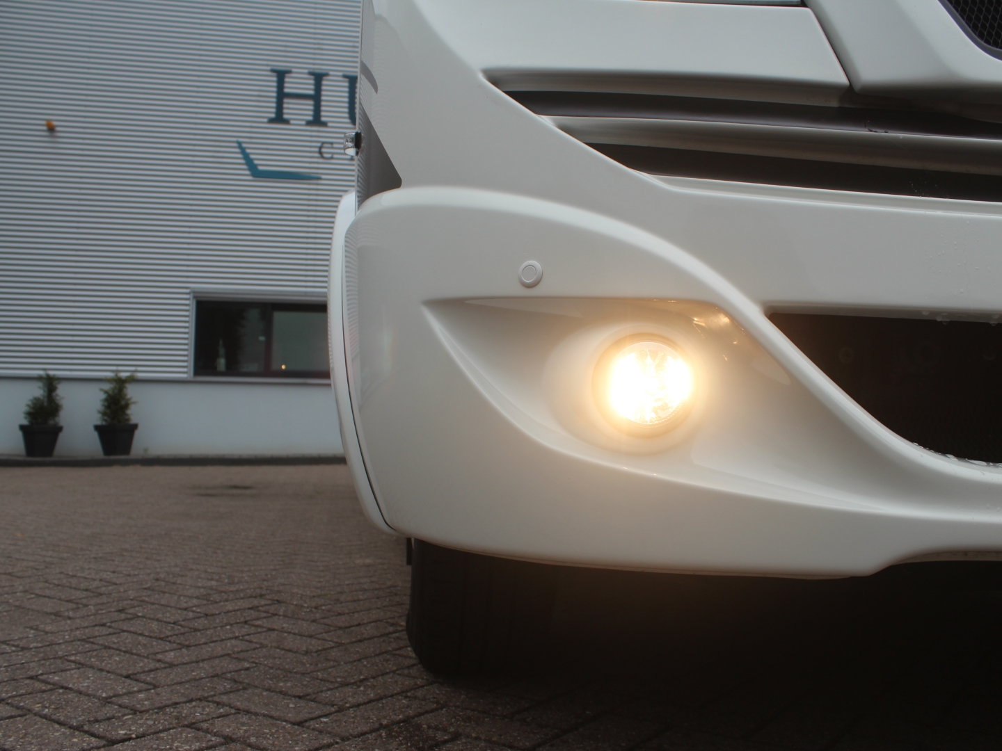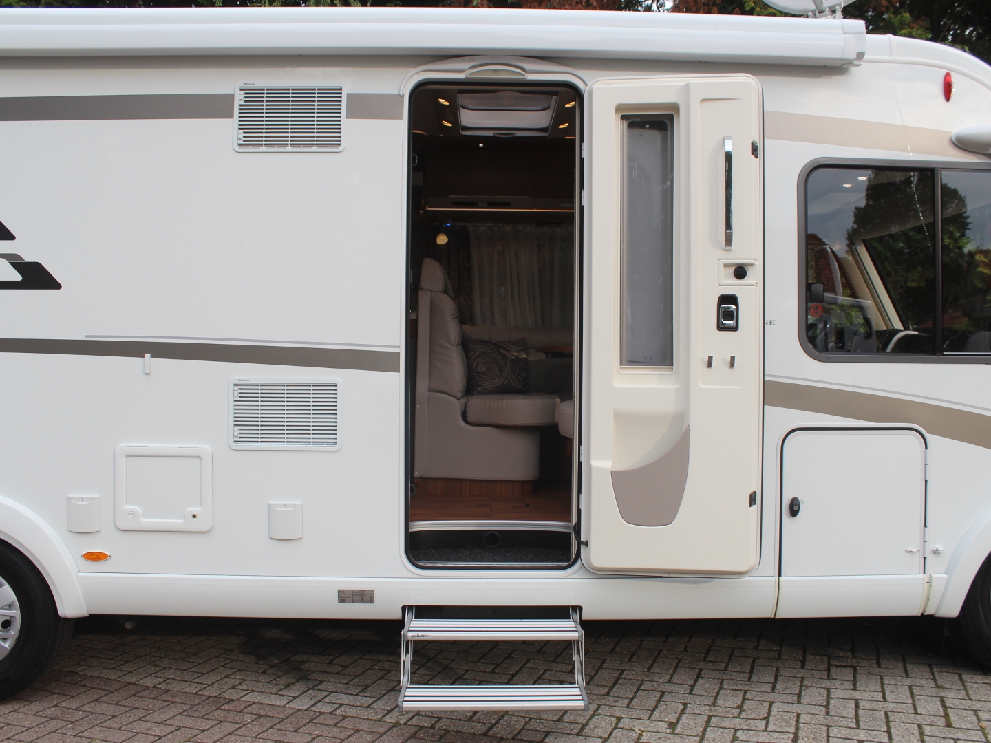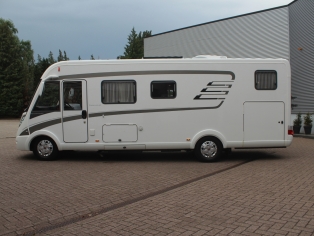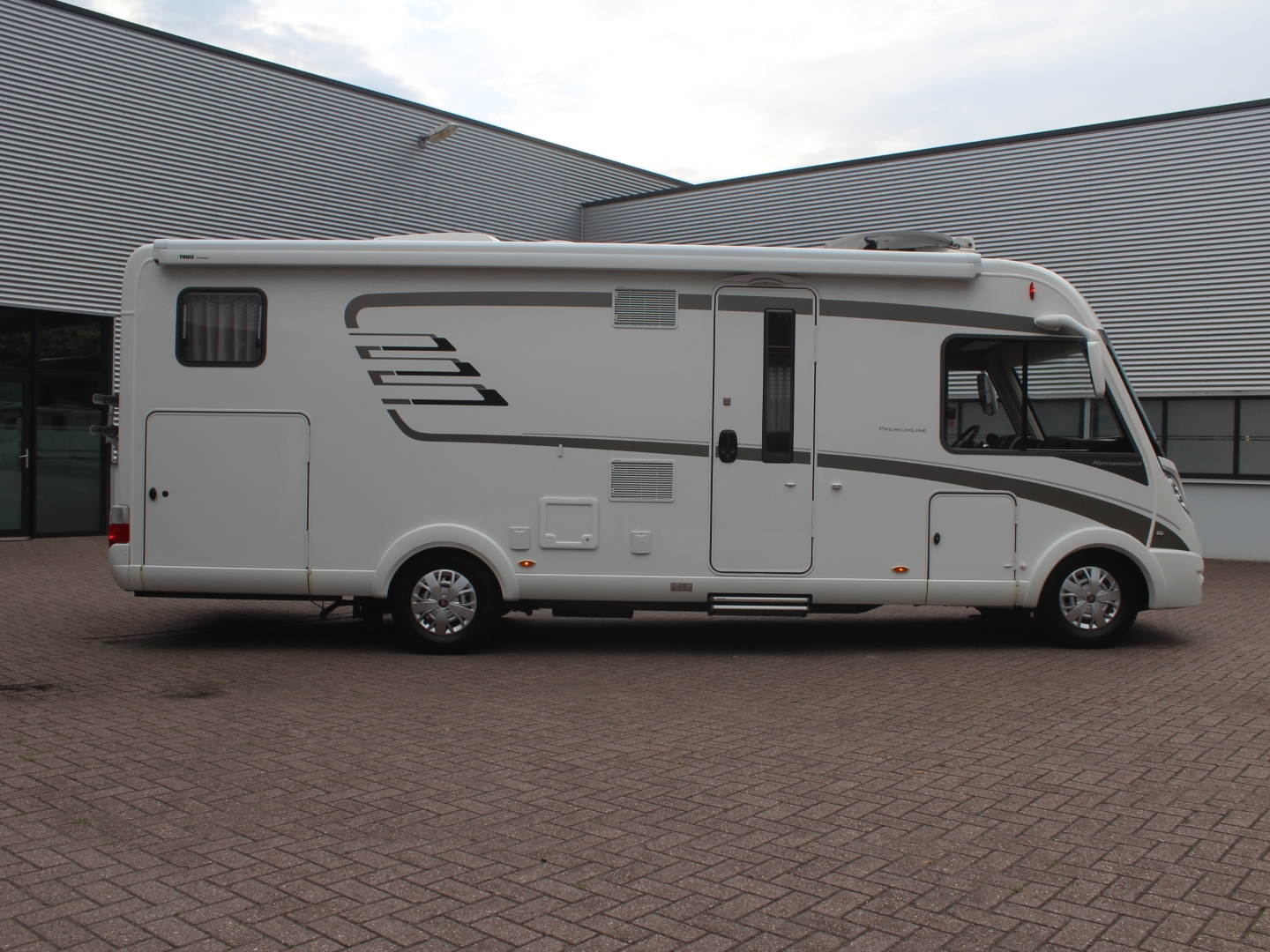 2 comfortabele in hoogte verstelbare en kantelbare Aguti pilotestoelen, draaibaar naar een gezellig comfort L-zit met luxe salontafel. Het interieur bestaat uit exclusief meubeldecor 'Palatino Apfel' met unieke stijl Premium Line in combinatie met de luxe stofbekleding met lederinleg waarbij met de vele LED verlichting een bijzondere sfeer ontstaat. Schitterende bovenkastjes in de cabine waar u rechtop kunt staan. De extra brede comfort ingangs-deur is voorzien van een raam, schuifbare hor, extra Abus veiligheids-slot en electrisch bedienbare opstap.