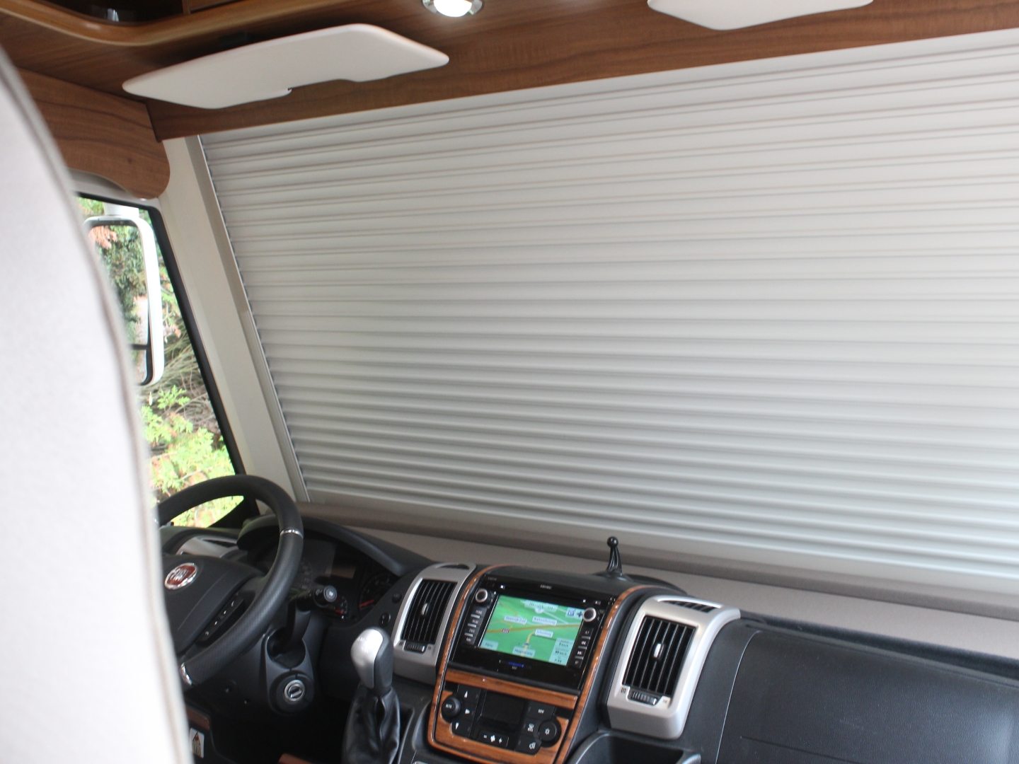 Alle ramen voorzien van vouwverduistering van hoogwaardige plisséstof, het voorraam bevat een electrisch rolluik.