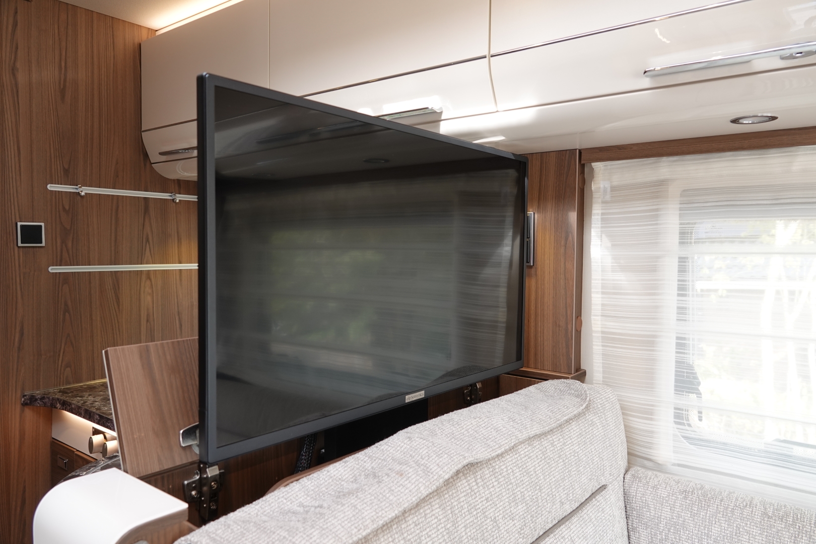 Verder is deze camper voorzien van het Hymer Comfort-Line pakket, Style-pakket automatische schotel Oyster met 32 inch TV en extra Tv in de slaapkamer, uittrekbare slede in de gaskast voor optimale toegang tot de gasflessen, grote Thule luifel, fietsenrek in garage, 3 huishoudaccu’s welke continu worden geladen door het de 5 zonnepanelen, en sinus omvormer 3500 Watt, wat zorgt voor voldoende stroom tijdens het vrijkamperen. De camper is automatisch waterpas te stellen met het E&P hydraulisch levelsysteem.