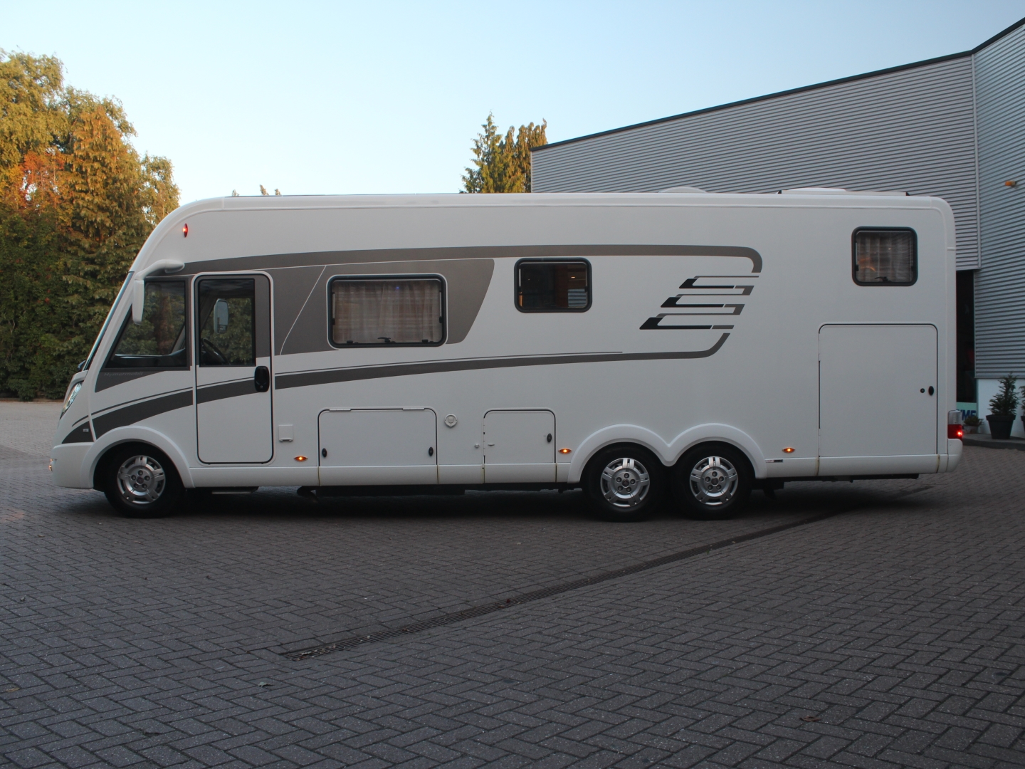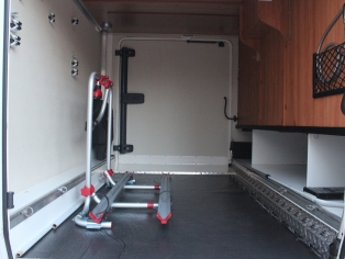 De camper heeft veel bergruimte in de ruime dubbele bodem bereikbaar dmv. verschillende luiken in de vloer. Het bevat tevens een grote garage, met een vrije doorgangshoogte van 1.30 meter, met aan beide zijden een grote deur, waarin uw fietsen en bagage veilig binnen geplaatst kunnen worden.