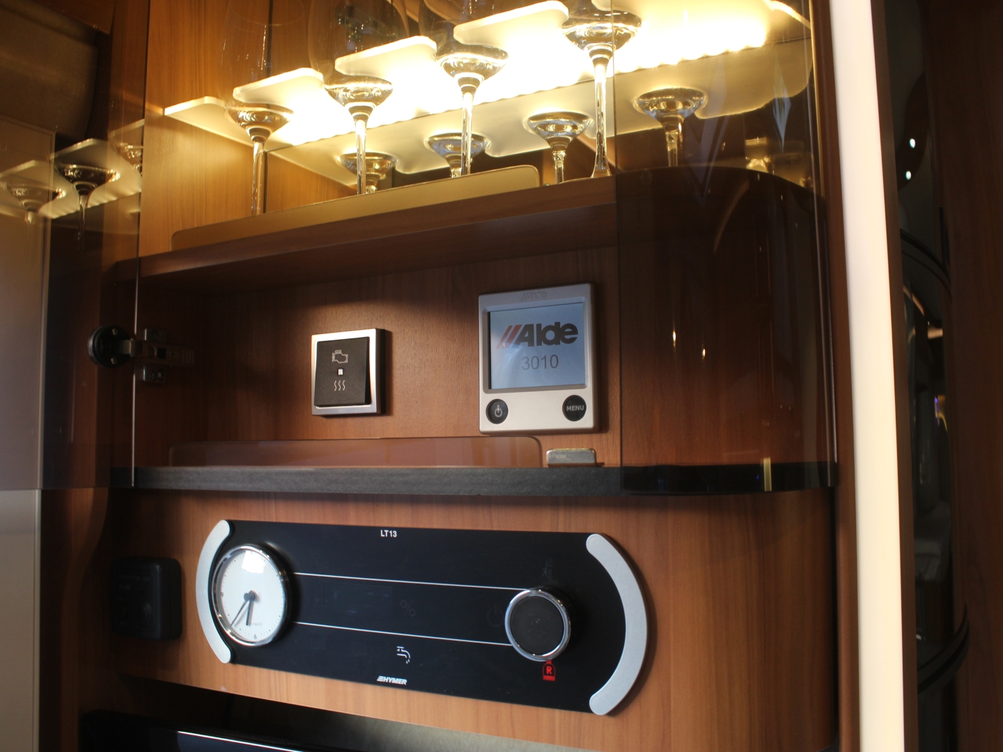 Deze Hymer heeft het Alde winterpakket, bestaande uit het Alde Compact 3020 vloeistof verwarmings-systeem inclusief motor-voorverwarming en isolatieglas in de cabine. De 190 ltr schoon - en 175 ltr vuilwatertank bevinden zich in de (verwarmde) dubbele vloer.