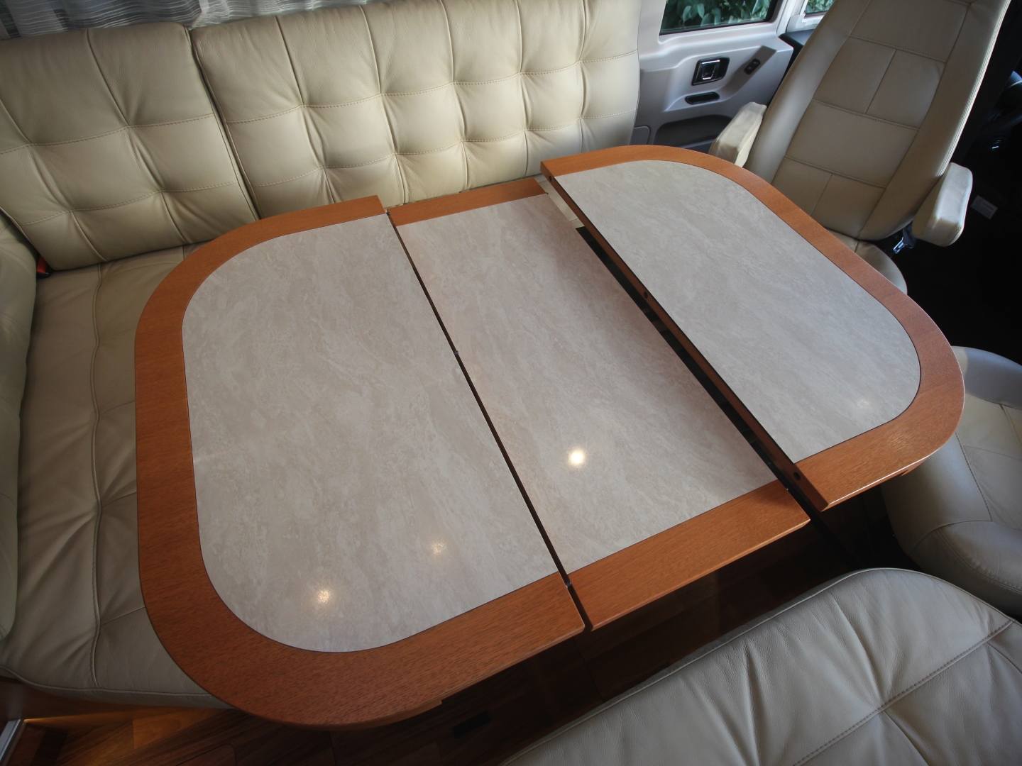 De royale hoekkeuken heeft een luxe keukenblad met spoelbak en 3 pits kooktoestel met automatische ontsteking en diverse gelagerde laden met verrassend veel bergruimte voor het kookgerei en boodschappen, grote dubbeldeurs koelkast 160 ltr met aparte vriezer, luxe bakoven en automatische omschakeling van 220 V/12 V/gas