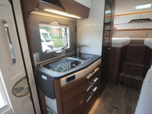 De royale keuken heeft een luxe keukenblad met spoelbak en 3 pits kooktoestel met automatische ontsteking, diverse gelagerde laden met verrassend veel bergruimte voor het kookgerei en boodschappen, grote Smart Tower koelkast met vriezer, en automatische energiekeuze.