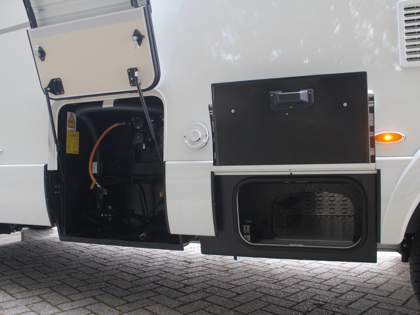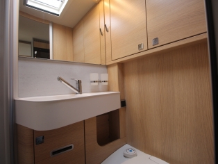 De camper is voorzien van het Truma Combi boiler/verwarming systeem met ring-verwarming. De 180 ltr schoon - en 150 ltr vuilwatertank zijn in de (verwarmde) vloer weggewerkt.
