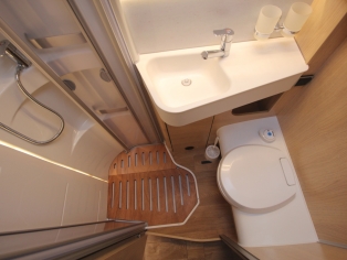 De camper is voorzien van het Truma Combi boiler/verwarming systeem met ring-verwarming. De 180 ltr schoon - en 150 ltr vuilwatertank zijn in de (verwarmde) vloer weggewerkt.