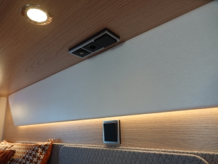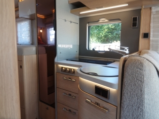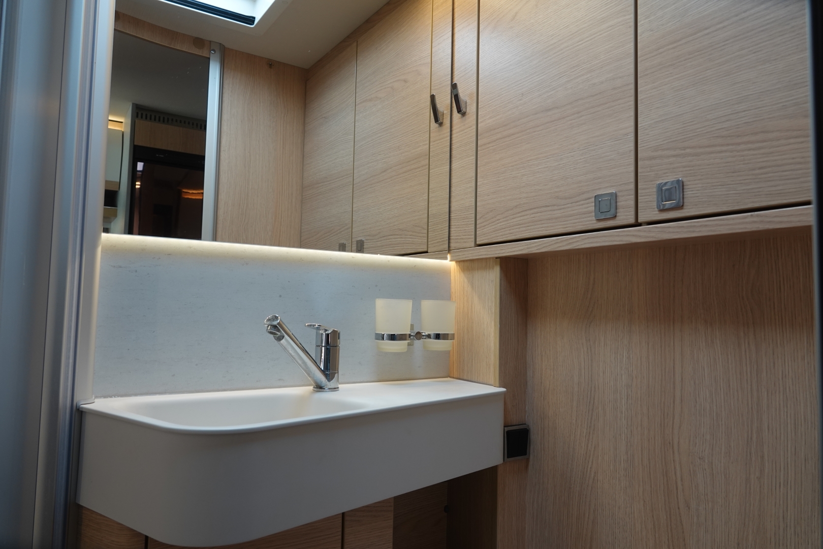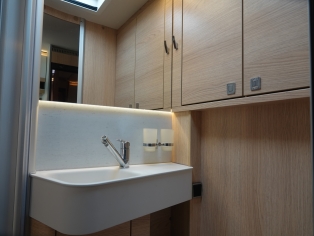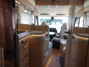 Het interieur bestaat uit het Hymer Grand Oak meubeldecor met de luxe Kitami bekleding wat in combinatie met de vele LED verlichting een bijzondere sfeer geeft.