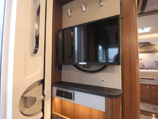 Bovendien is deze camper voorzien van grote Thule luifel, automatische schotel Oyster Vision Cytrac met extra TV in de slaapkamer en Aventa dakairco woongedeelte.