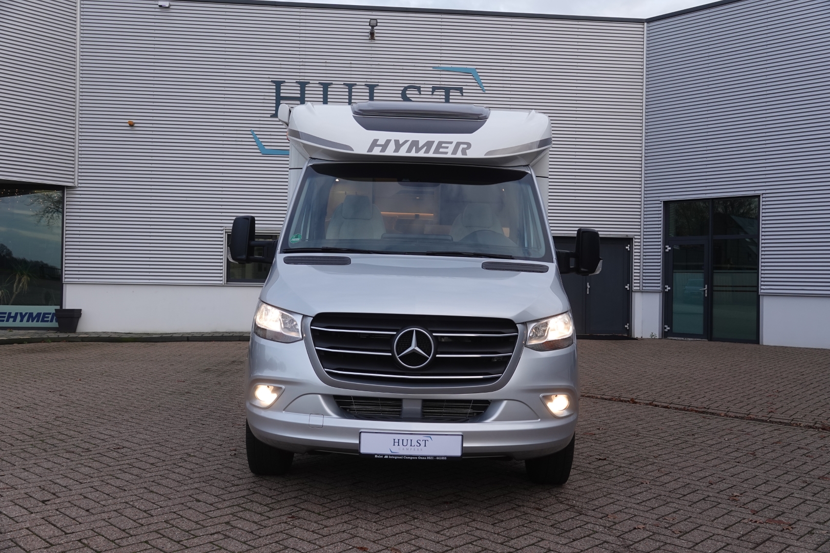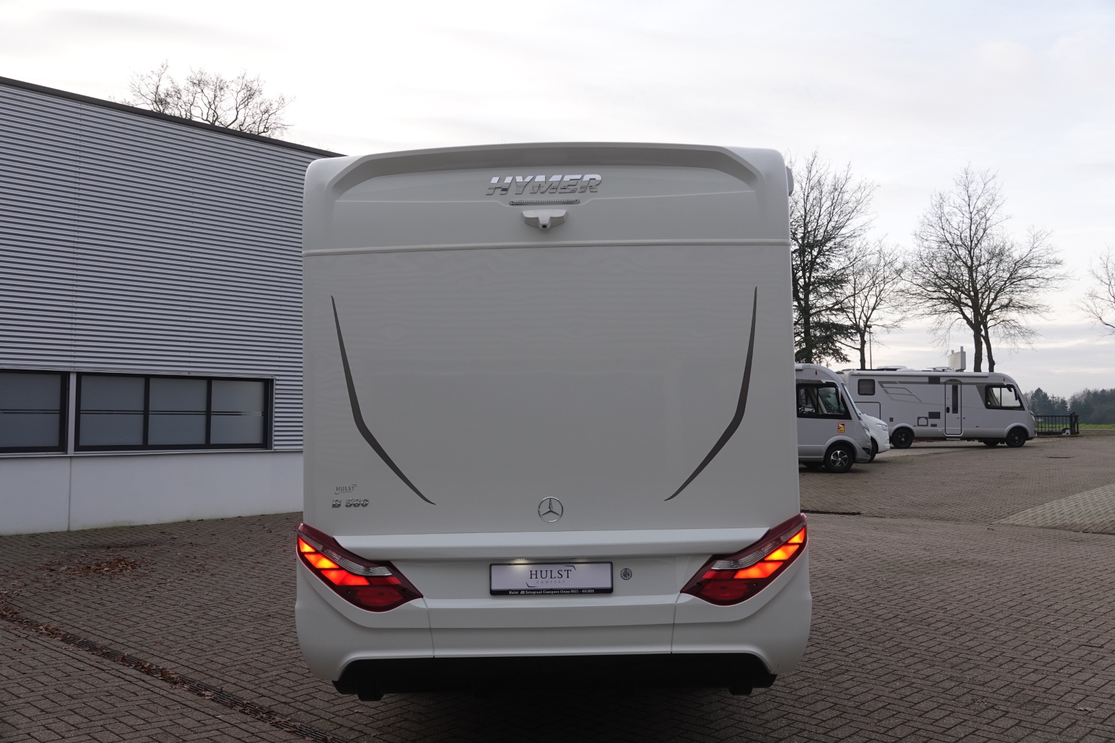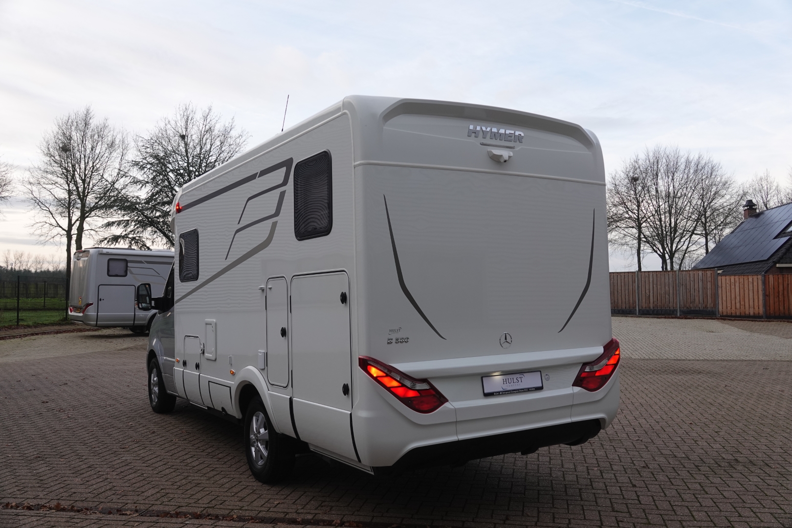 Bovendien is deze camper voorzien van Thule luifel, buitendouche in garage, Truma Duo-control met crashsensor, 2 zonnepanelen, elektrische dakventilator in keuken, stabilisatiesteunen achter, en Hymer Bike Rack in garage