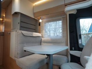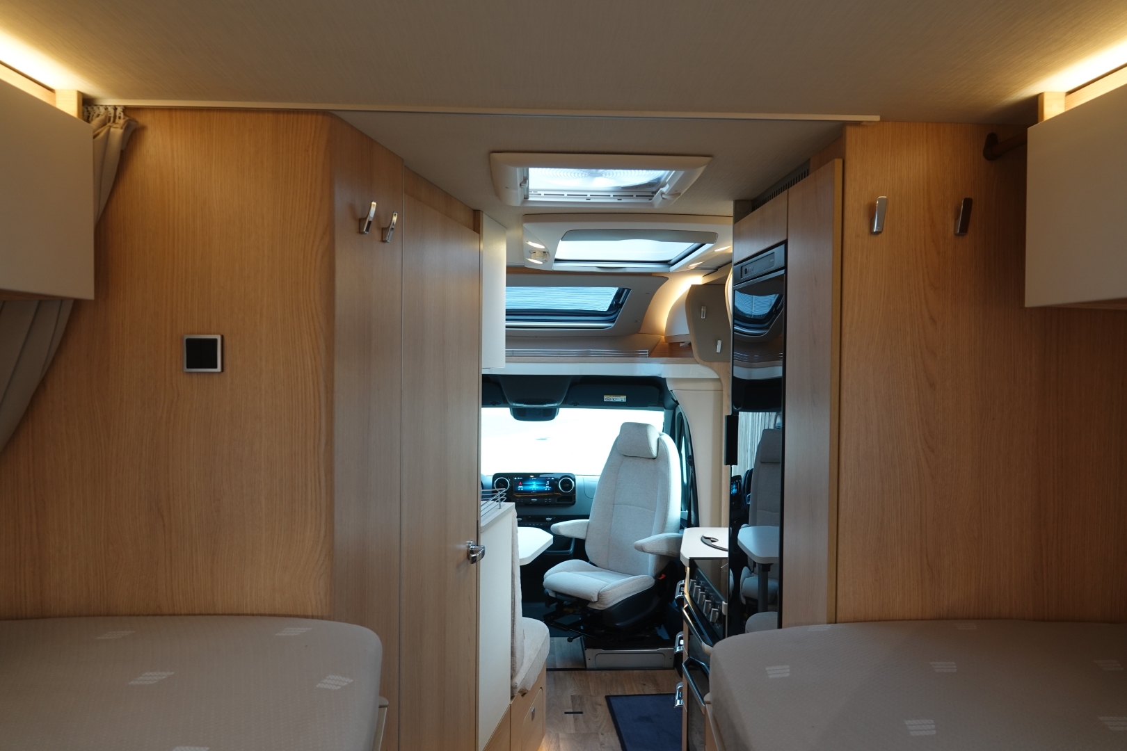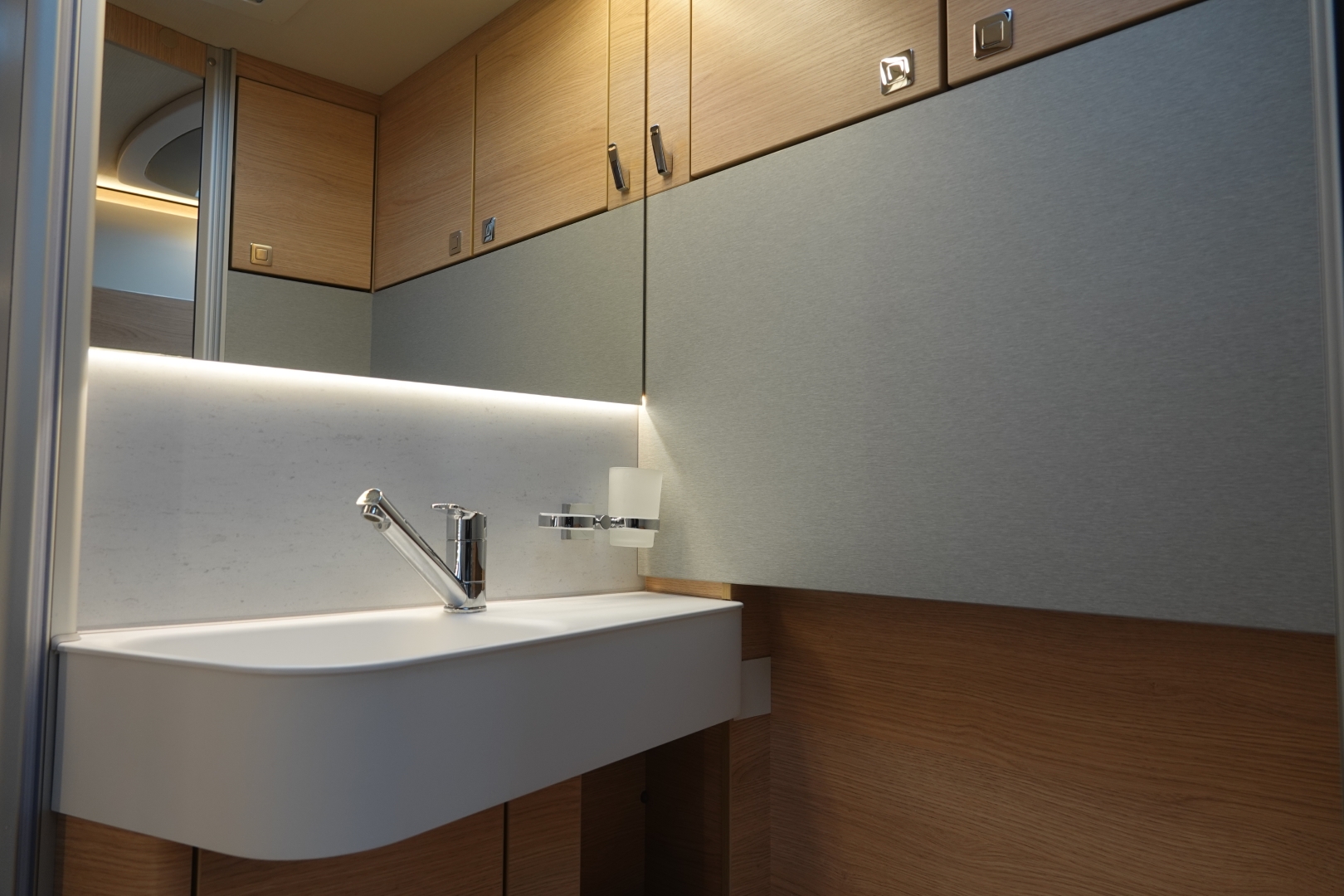 Het interieur decor bestaat uit het Hymer Grand Oak meubilair met de luxe Cristallo bekleding wat in combinatie met de vele LED verlichting een bijzondere sfeer geeft.