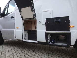 De camper is voorzien van het Truma Combi boiler/verwarming systeem met ring-verwarming. De 180 ltr schoon - en 150 ltr vuilwatertank zijn in de (verwarmde) vloer weggewerkt.