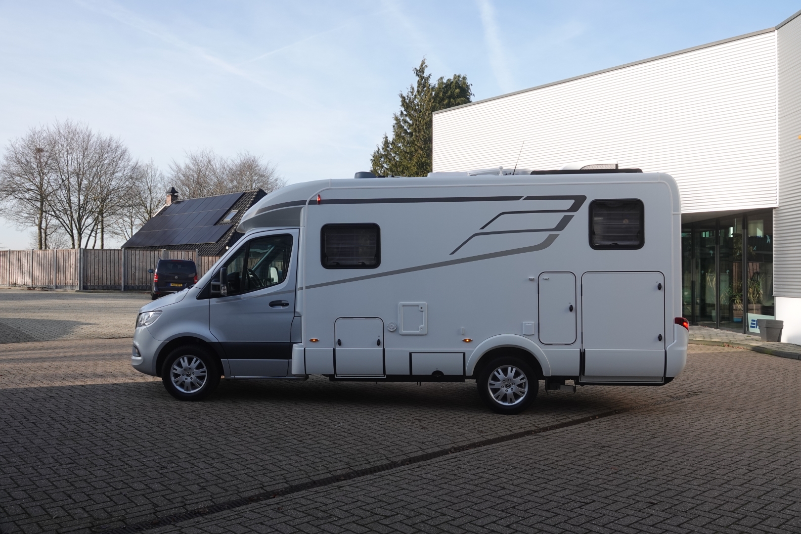 Deze prachtige Hymer B MC-T 580 is uitgevoerd met de Mercedes Benz 418 CDI 177 PK Euro 6c motor met de 9G-Tronic automaat. Dankzij het innovatieve SLC Chassis is comfortabel rijgedrag en stabiele wegligging gegarandeerd. Het is een on-afhankelijk torsie geveerd breedspoor met laag zwaartepunt, techniekvakken, verwarmde vlakke bodem en doorlaadmogelijkheid. Voorzien van Crystall Silver metallic cabine, Comfort-line pakket, mistlampen, grille in chroom en lichtmetalen velgen. Het lederen stuurwiel met bediening voor de MBUX 10.25 multimediasysteem geeft een fantastisch gebruikersgemak van o.a. het navigatiesysteem. Tevens voorzien van airco, ECO start stop, adaptive cruise control, achteruitrij-camera, bestuurders en bijrijdersairbag, elektrische parkeerrem, centrale vergrendeling en elektrisch bedienbare spiegels en ramen.