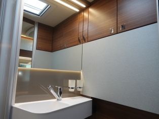 De camper is voorzien van het Truma Combi boiler/verwarming systeem met ring-verwarming. De 180 ltr schoon - en 150 ltr vuilwatertank zijn in de (verwarmde) vloer weggewerkt.