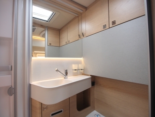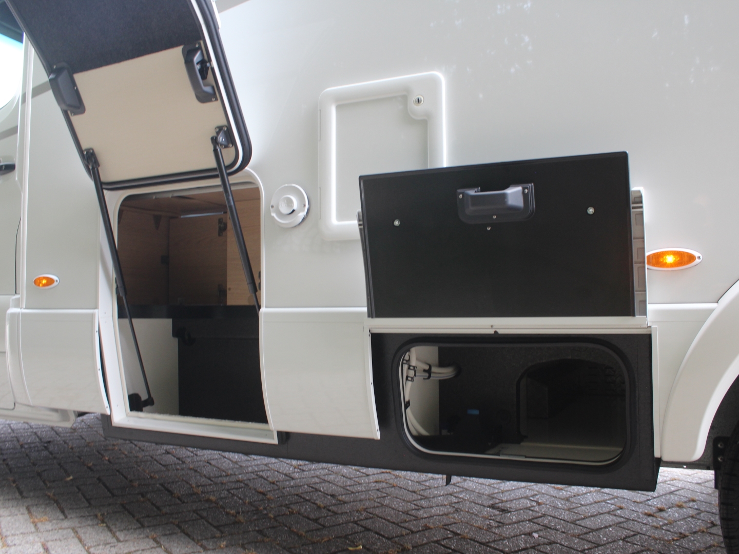 De camper is voorzien van het Truma Combi boiler/verwarming systeem met ring-verwarming. De 180 ltr schoon - en 150 ltr vuilwatertank zijn in de (verwarmde) vloer weggewerkt.
