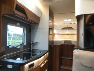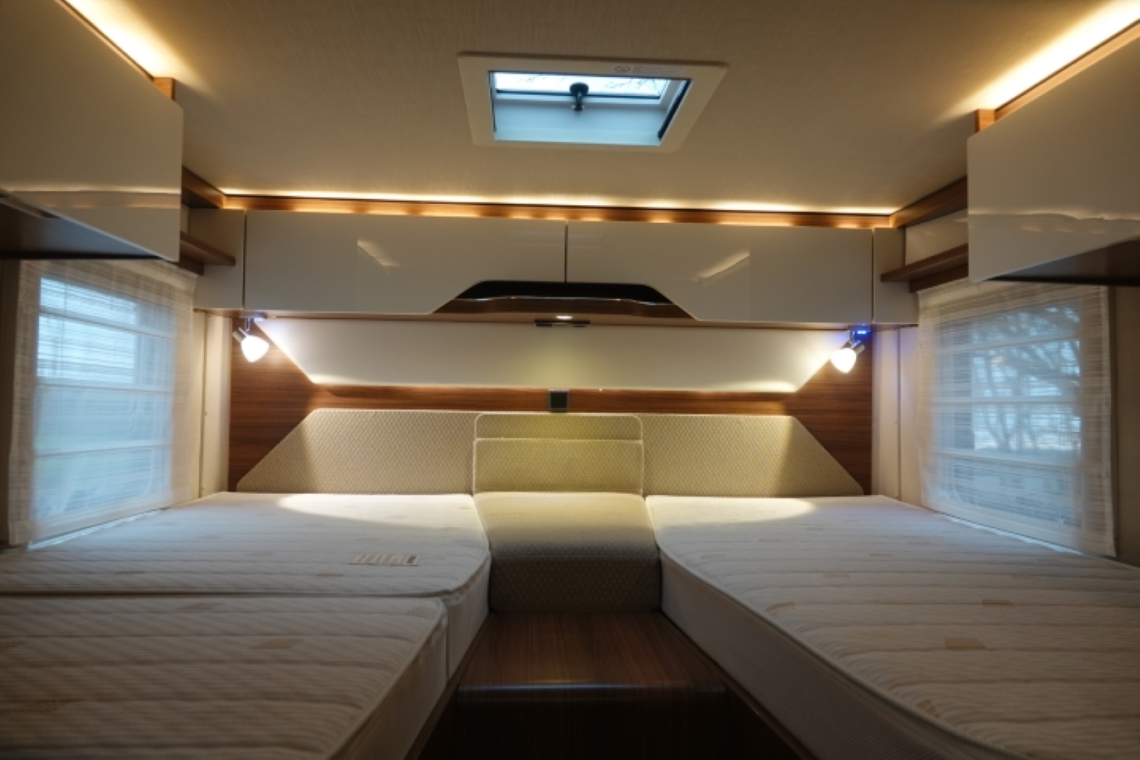 Het slaapgedeelte achterin heeft 2 lengte bedden met traagschuim matras op schotelsysteem voor optimaal slaapcomfort.