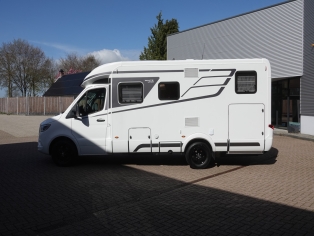 Deze prachtige, Hymer BMC-T 600 is uitgevoerd met de Mercedes Benz 417 CDI 170 PK Euro 6c motor met de 9G-Tronic automaat. Dankzij het innovatieve SLC Chassis is comfortabel rijgedrag en stabiele wegligging gegarandeerd. Het is een on-afhankelijk torsie geveerd breedspoor met laag zwaartepunt, techniekvakken, verwarmde vlakke bodem en doorlaadmogelijkheid. Voorzien van adaptive cruisecontrol, actieve rem-assistent, spoor-assistent, Comfort Line pakket, Style pakket, Rijassistentie pakket plus, lichtmetalen velgen, LED koplampen en mistlampen. Het lederen stuurwiel met bediening voor de MBUX 10.25 multimediasysteem geeft een fantastisch gebruikersgemak van o.a. het navigatiesysteem en camera. Tevens voorzien van half-automatische airco, elektrische parkeerrem, bestuurders en bijrijdersairbag, centrale vergrendeling en elektrisch bedienbare spiegels en ramen.