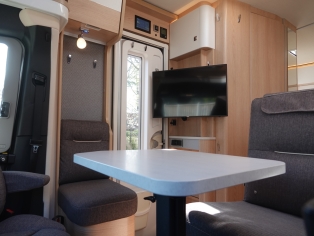 Bovendien is deze camper voorzien van automatische satellietschotel Oyster 85 Vision met 32 inch. LED TV, grote Thule luifel, extra stopcontacten pakket, Truma DuoControl CS automatische gasflesschakeling en extra huishoudaccu.