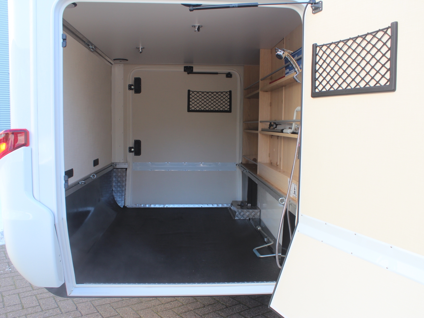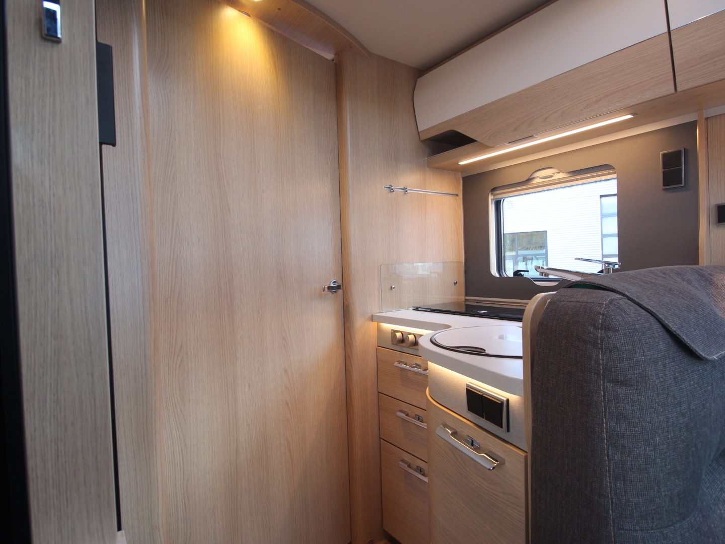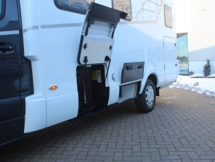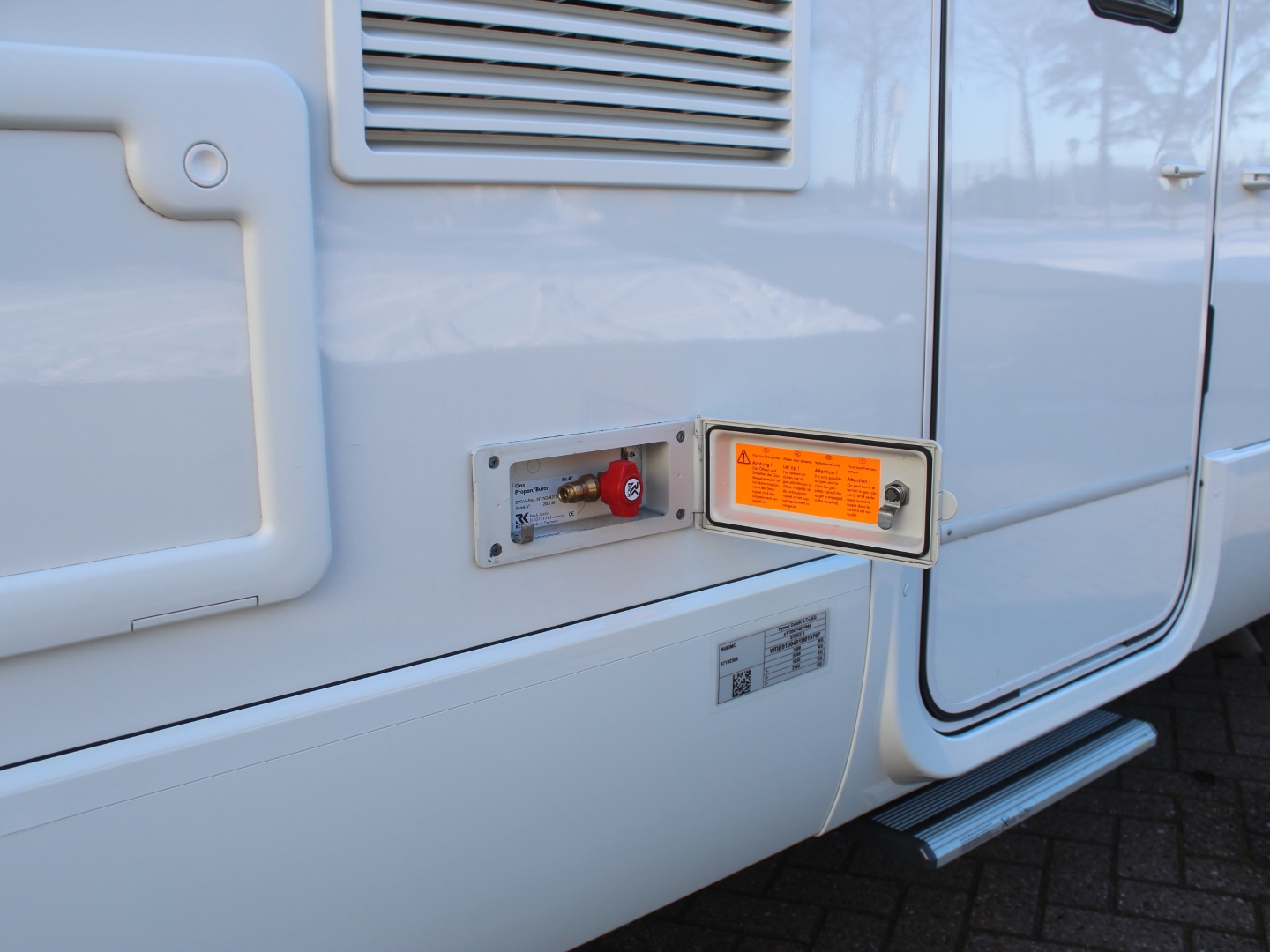 Bovendien is deze camper voorzien van Duo control gasflesschakeling met Eisex functie, BBQ aansluiting buiten, fietsendrager in garage, buitendouche in garage, Abus veiligheidsslot op camperdeur, grote Thule luifel, GFK hagelbestendig dak, stabilisatiesteunen achter, en automatische schotel Oyster Vision met 32 inch TV.