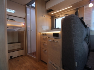 Het interieur bestaat uit het Hymer Grand Oak meubeldecor met de luxe Janeiro stof bekleding wat in combinatie met de vele LED verlichting een bijzondere sfeer geeft.