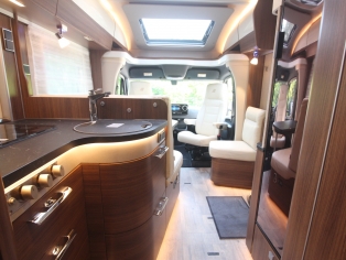 Het interieur bestaat uit het Hymer Noce Cognac meubeldecor met de luxe Napoli leer bekleding wat in combinatie met de vele LED verlichting een bijzondere sfeer geeft.