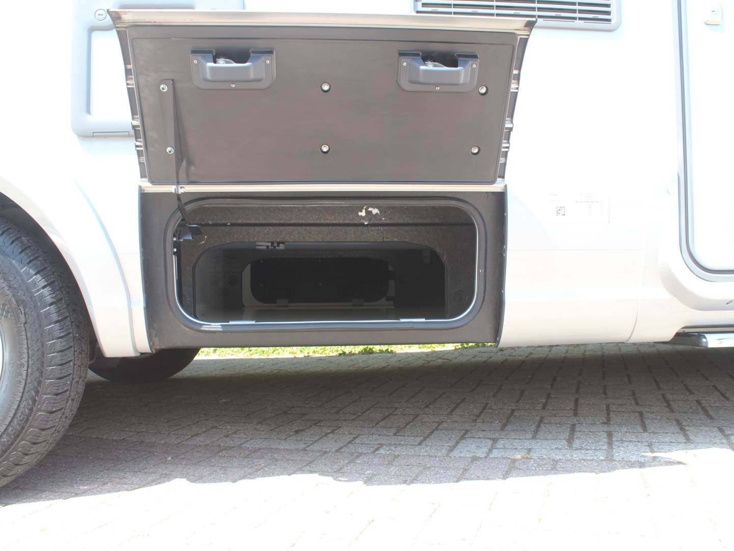De slaapkamer achter heeft twee enkele bedden, (dicht te leggen naar eén groot bed) met het Hymer slaapcomfort schotelsysteem. Door de tussendeur te sluiten ontstaat er een ruime slaapkamer met sanitaire voorzieningen met veel privacy. Bovenin de cabine is royaal slaapplaats voor 2 personen in het hefbed. De camper heeft veel bergruimte in de ruime dubbele bodem bereikbaar dmv. verschillende luiken in de vloer en diverse kleppen buitenkant. Het bevat tevens een grote garage, met aan beide zijden een grote deur, waarin uw fietsen en bagage veilig binnen geplaatst kunnen worden. De 180 ltr schoon- en 150 ltr vuilwatertank bevinden zich in de (verwarmde) dubbele vloer.
