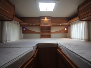 Het slaapgedeelte achterin heeft 2 enkele bedden met traagschuim matras voor optimaal slaapcomfort.