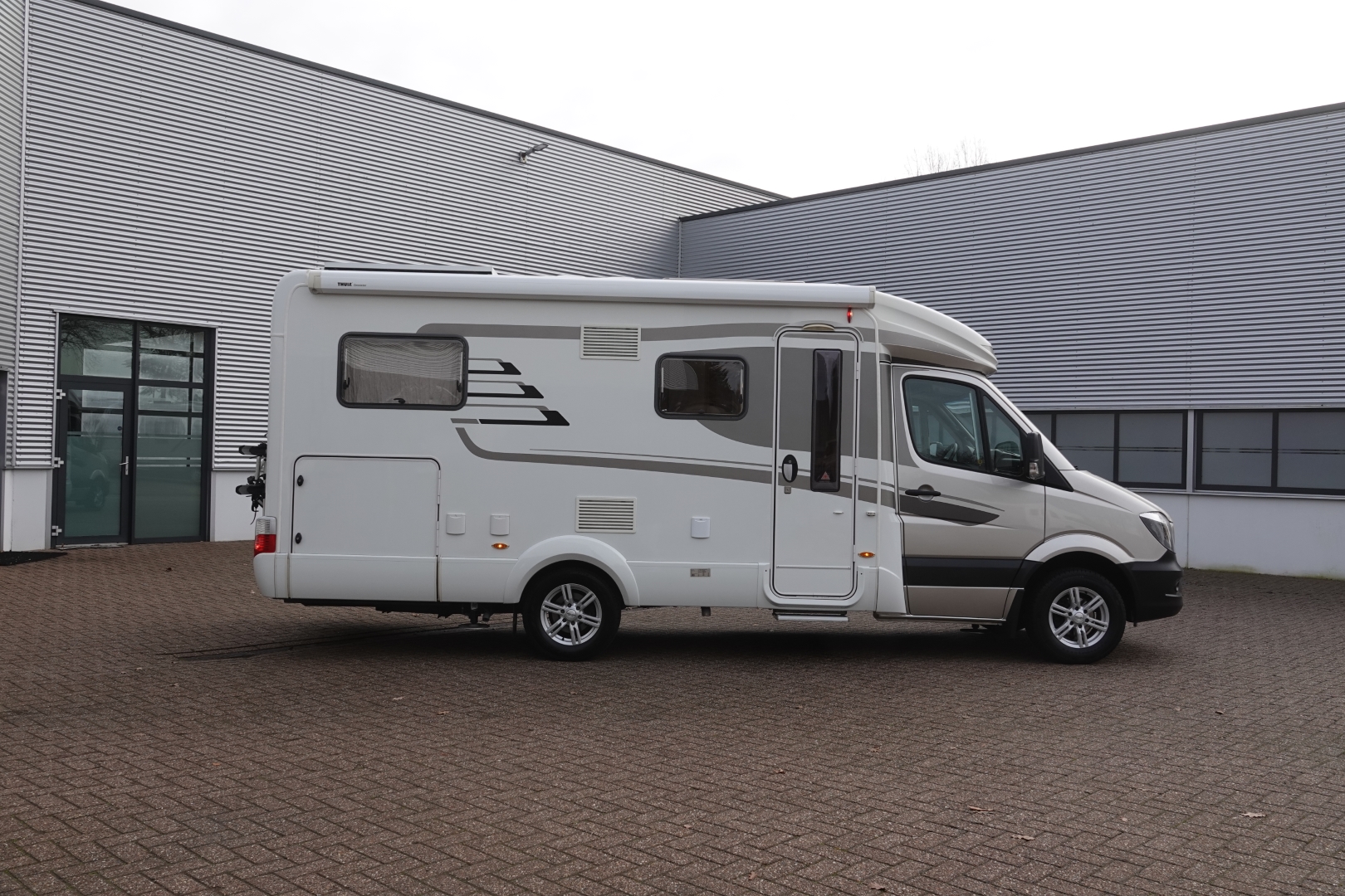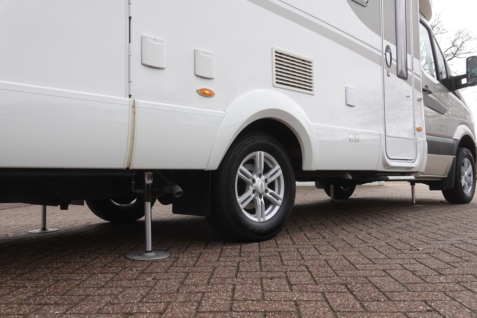 Bovendien is deze camper voorzien van automatische satellietschotel Oyster 85 Vision met HD receiver, Akai LED TV met geintegreerde DVD speler, elektrisch liftbare fietsendrager, Thule luifel, Truma Duo Control met crashsensor, BBQ aansluiting, Abus veiligheidsslot op camperdeur, zonnepaneel, E&P hydraulisch levelsysteem en LPG installatie met buitenvuller .