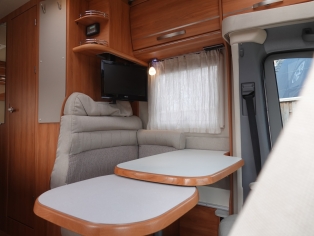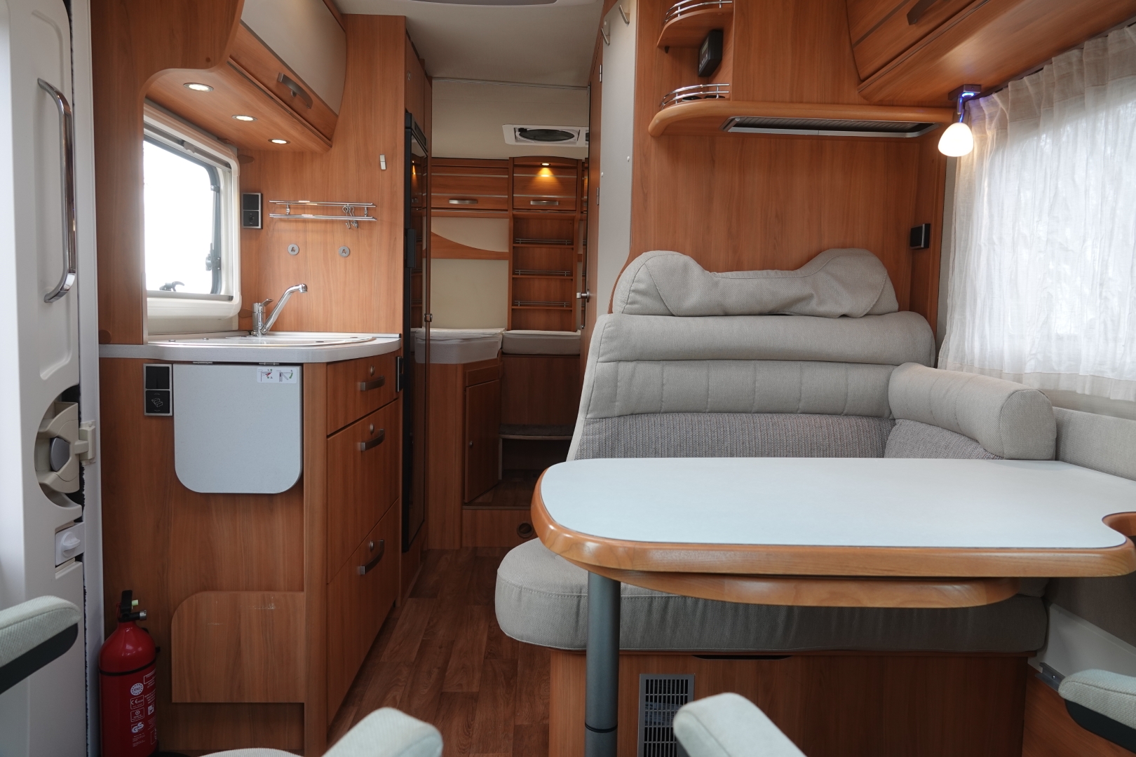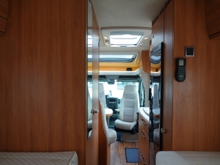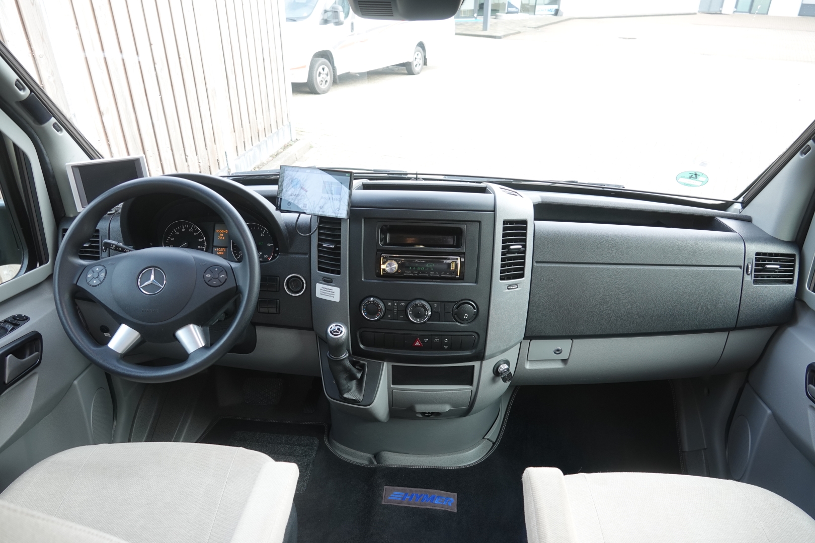 Het interieur bestaat uit het Hymer Trentino Birnbaum meubilair met de luxe Cremissimo bekleding wat met de LED verlichting een bijzondere sfeer geeft. Alle ramen zijn voorzien van vouwverduistering.