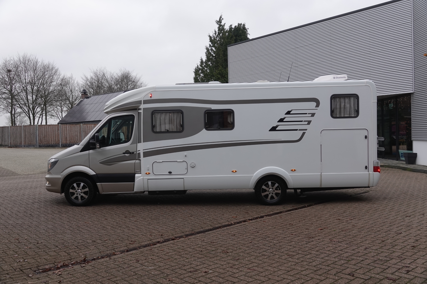 Bovendien is deze camper voorzien van automatische schotel Oyster met tv, Thule luifel, liftbare fietsendrager, Truma Duo Control met crashsensor, extra huishoudaccu, omvormer 12/220V, groot zonnepaneel, en E&P hydraulisch levelsysteem voor het automatisch waterpas stellen .